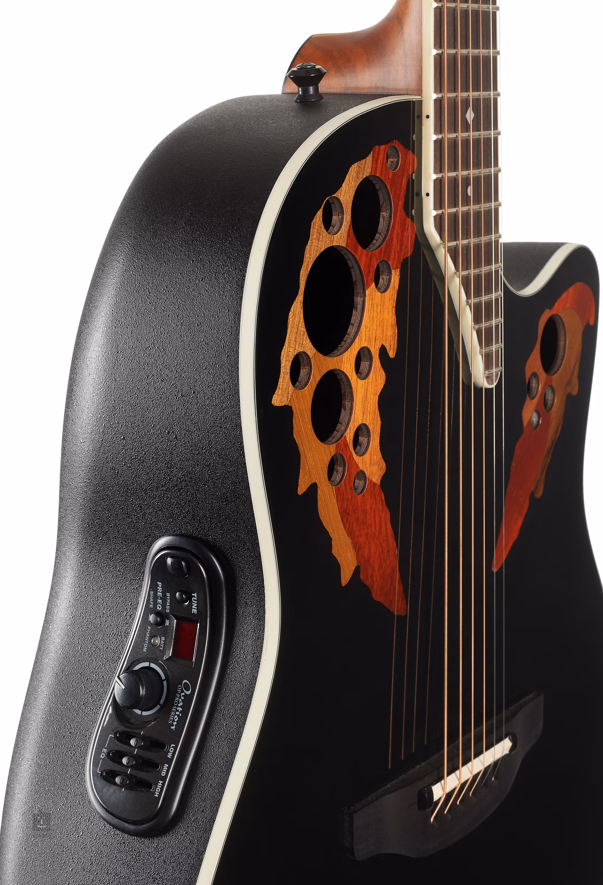 Kytara je osazená elektronikou OP-PRO s třípásmovým ekvalizérem, zabudovanou ladičkou a snímačem Ovation OCP-1K.