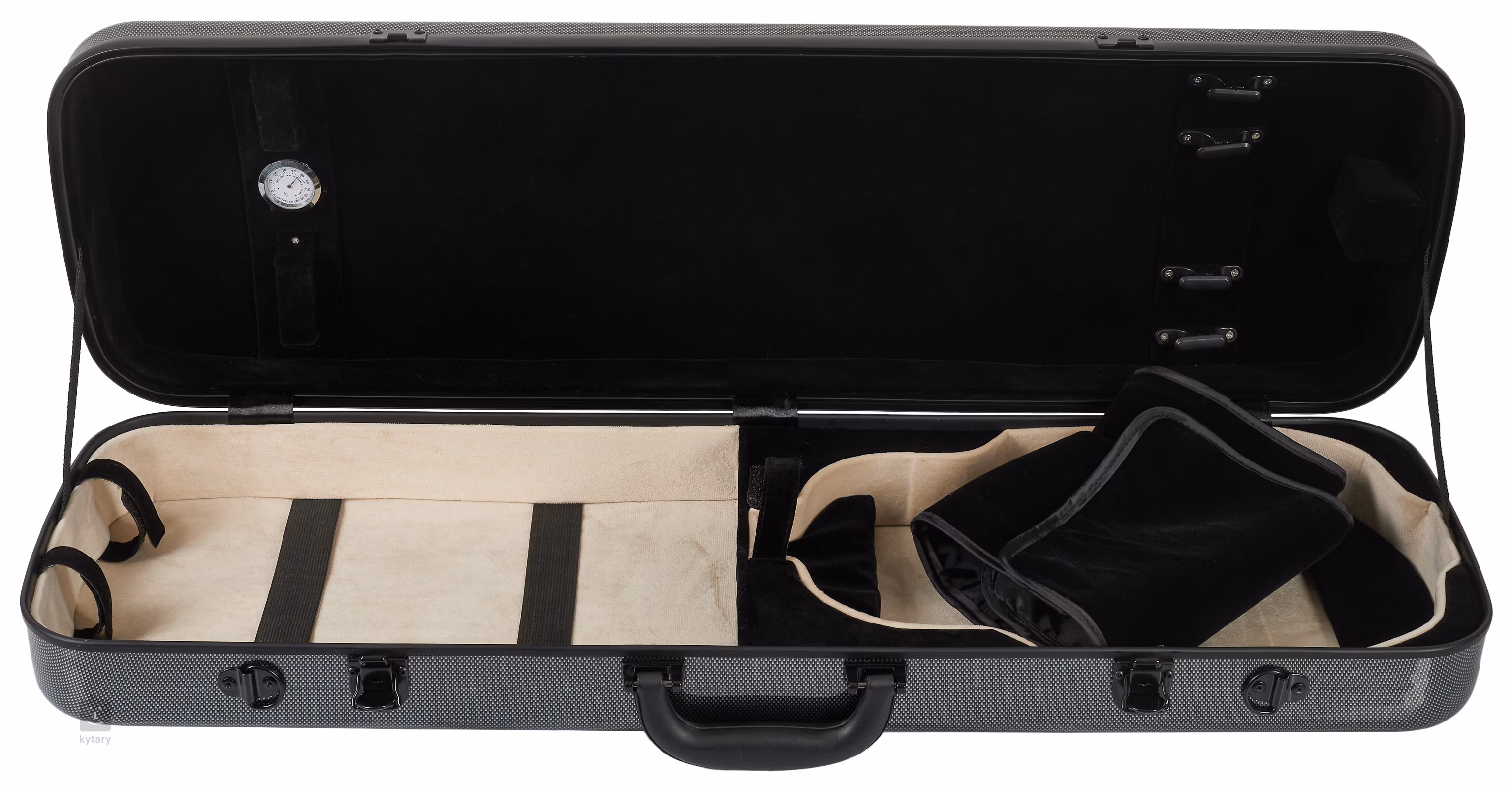 Obaly značky Palatino nabízí skvělý poměr ceny a kvality – tato značka má bohaté zkušenosti i s výrobou smyčcových nástrojů, ví tedy nejlépe, jak se postarat o bezpečí vašich houslí, viol, violoncell a kontrabasů. Skořepinová kostra tohoto obalu je vyrobena ze speciálního odlehčeného plastu, který nabízí nekompromisní ochranu před nárazy i nástrahami počasí, a to navíc v elegantním balení. Měkký vnitřek je šetrný k povrchu vašich houslí a praktické přihrádky nabízí dostatek prostoru pro uložení nezbytného příslušenství i dvojice smyčců. Díky minimální váze a dvojici zádových popruhů přímo vybízí, abyste vaše housle vzali kamkoliv s sebou. Perfektní kondici vašeho nástroje zajišťuje také integrovaný vlhkoměr a vše jistí masivní kovové zámky.