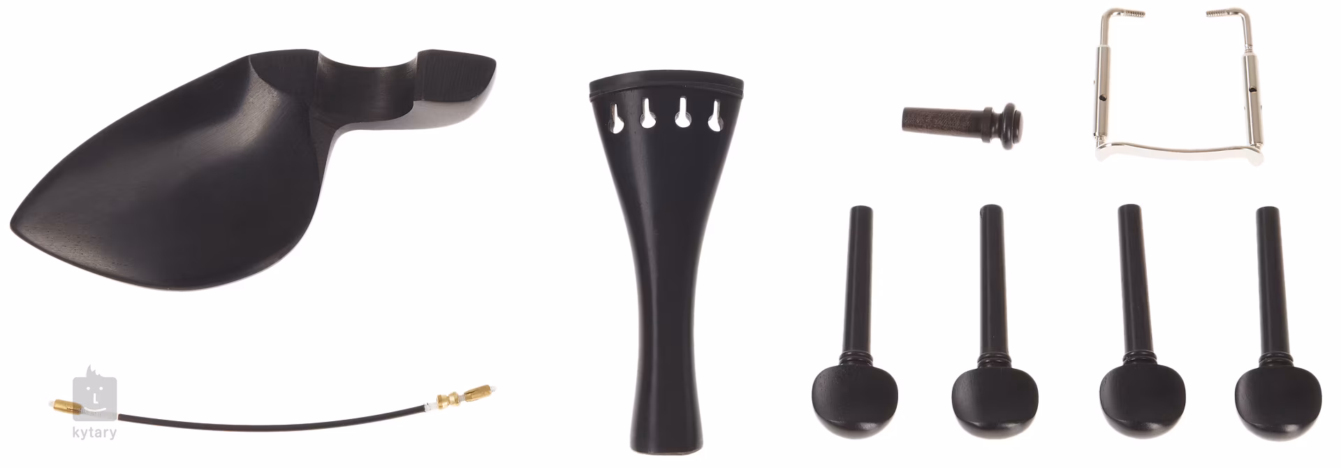 Tato ebenová sada příslušenství je vhodná pro 4/4 housle a obsahuje čtyři ladící kolíčky, podbradek, mechaniku podbradku, žalud, struník a poutko struníku.
