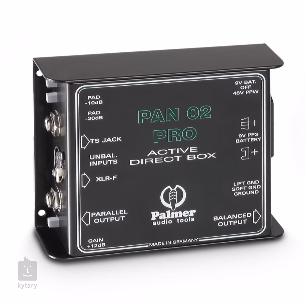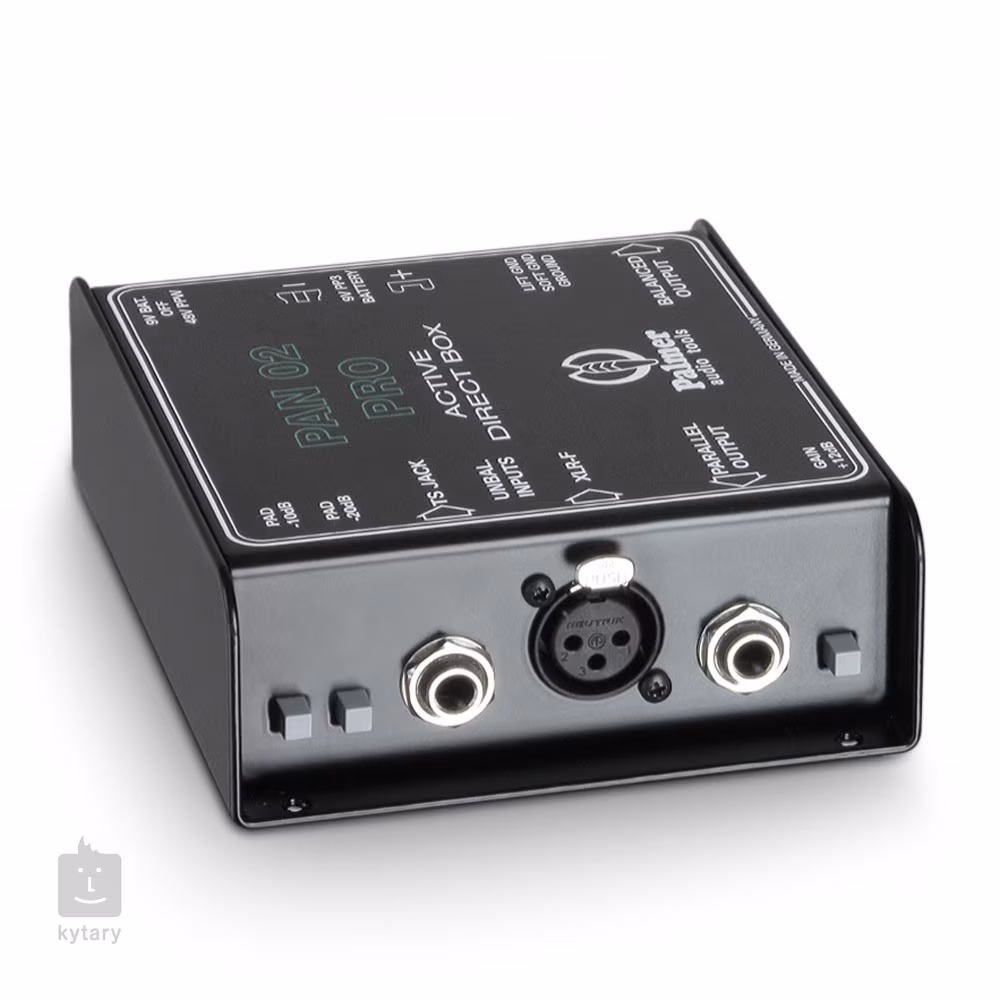 Prvotřídní aktivní DI box disponuje robustním šasi z oceli a flexibilní konektivitou se všemi druhy hudebních nástrojů. Jeden z panelů obsahuje XLR/Jack 6,3 mm TS vstupy a paralelní THRU výstup pro aparát, další panel potom nabízí vyvážený XLR výstup pro mixážní pult. Vstupní citlivost lze ovládat na úrovni linky i na ůrovni reproduktorů, PAN 02 Pro je tedy univerzální a flexibilní zařízení vhodné pro live performance a studiová session. DI box disponuje přepínači pro snížení citlivosti vstupního signálu o 10, 20 nebo 30 dB, spínačem GAIN pro zesílení signálu o 12 dB a třípolohovými přepínači zemnění a napájení.