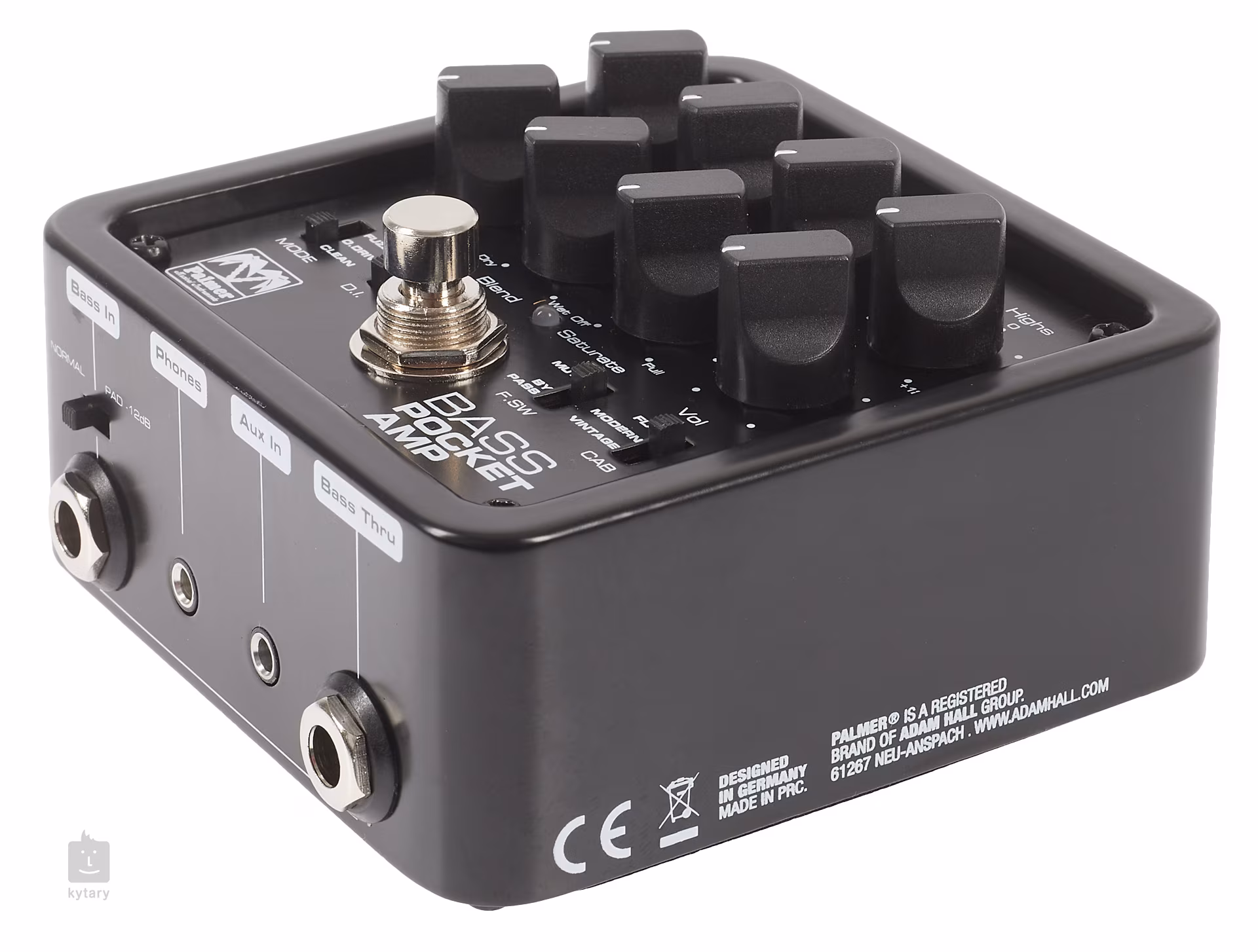 Kapesní baskytarový předzesilovač Pocket Amp Bass od společnosti Palmer se stane vaším věrným pomocníkem při koncertování, nahrávání ve studiu i domácím cvičení. Je přizpůsoben pro aktivní i pasivní baskytary a nabízí tři zvukové režimy – Clean, Overdrive a Fuzz. Zvuk lze dále upravovat pomocí ovladačů Drive a Saturation, s nimiž si nastavíte míru a charakter zkreslení. Potenciometr Blend vám umožní nastavit poměr dry a wet signálu, třípásmový ekvalizér se semiparametrickým ovládáním středových frekvencí se postará o přesné doladění zvuku a Volume poslouží jako běžný ovladač hlasitosti. Další zvukové možnosti nabízí přepínač simulace reprobeden s režimy Flat, Modern a Vintage.
