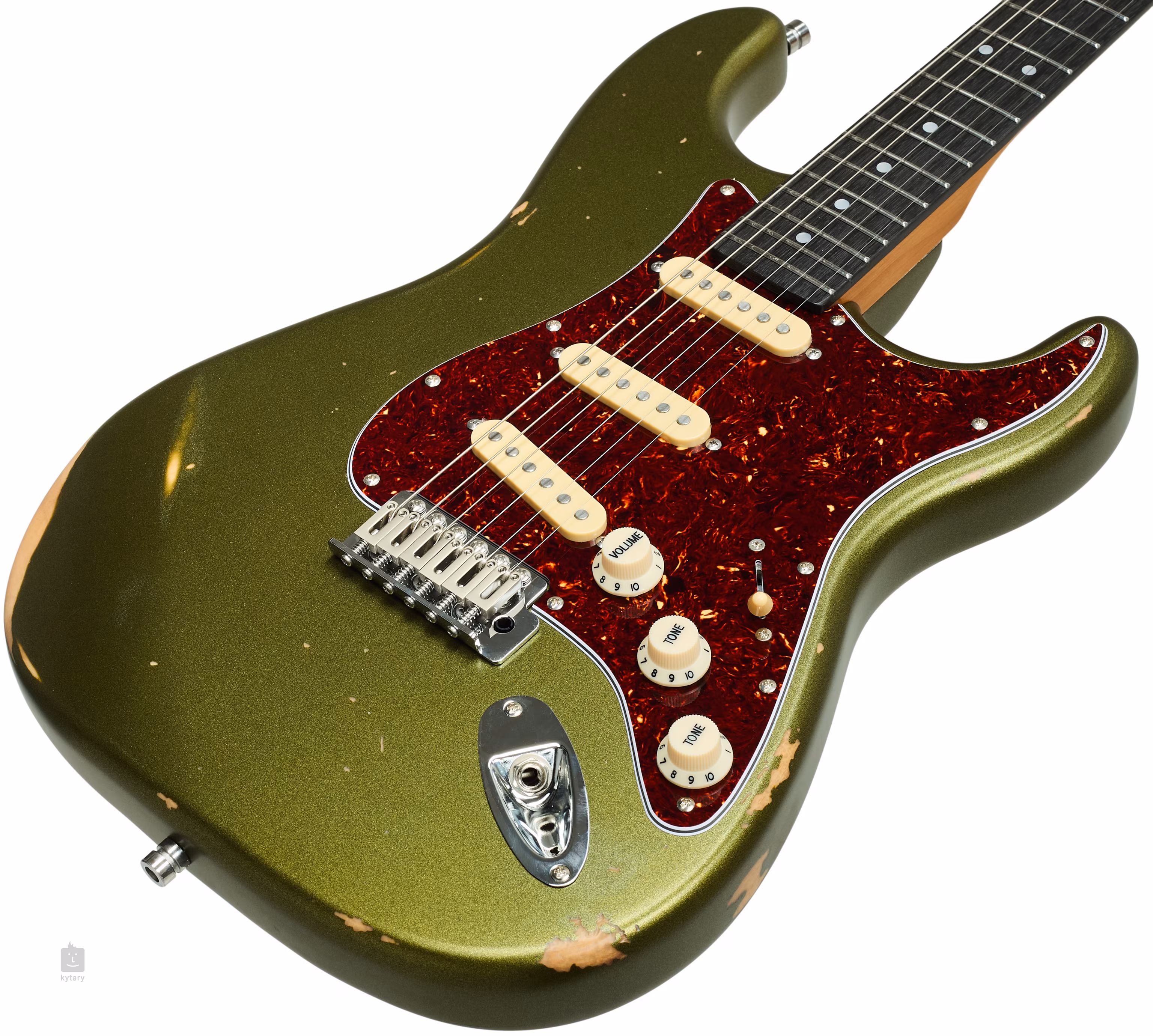 Tři ručně vinuté single-coil snímače s Alnico V magnety poskytují kytaře čistý dynamický zvuk. Jeho kontury upravíte pomocí standardních ovladačů. Struny jsou přes nultý pražec z kosti uchyceny v uzamykatelných ladicích mechanikách s převodovým poměrem 1:19 a tremolu. Stylové zpracování podtrhuje pickguard z imitace želvoviny.