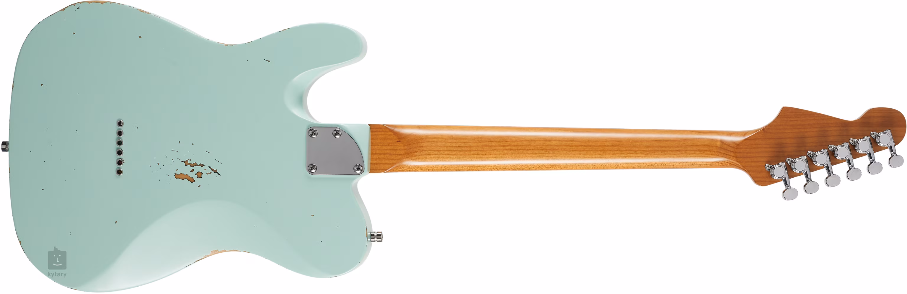 Tělo elektrické kytary PT-6 SFG R ze dřeva paulovnie zdobí ručně nanesený lak z nitrocelulózy a antikovaný finiš s prvky umělé patiny. Proč čekat desítky let na ten správný vintage vzhled a vibe, když ho můžete mít hned. K javorovému krku je přilepen palisandrový hmatník osazený dvaadvaceti pražci z nerezové oceli velikosti Jumbo. Díky tepelné úpravě je krk stabilnější, zároveň získává i příjemně nazlátlý vintage vzhled. Plošší rádius hmatníku (13,75 palců) naopak z katalogu vintage kytar úplně nevychází, ale kytara díky tomu může zaujmout i modernější hráče. Orientaci na hmatníku i za šera usnadňují luminiscenční tečky na boku.