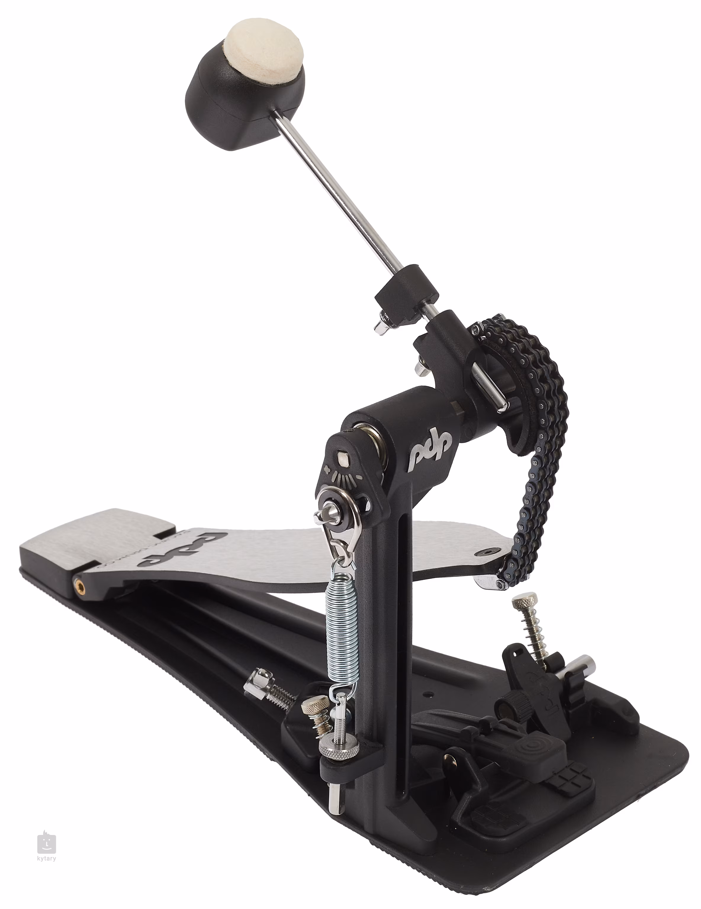 PDSPCO Single Pedal Concept Series je rychlý a responzivní single pedál k basovému bubnu s řetězovým double-chain převodem, lineární vačkou, dvoustranným beaterem, nastavením sklonu beateru, hladkým povrchem footboardu s integrovaným pantem s jehlovými ložisky a masivní ocelovou základnou s magnetickým ladícím klíčem.