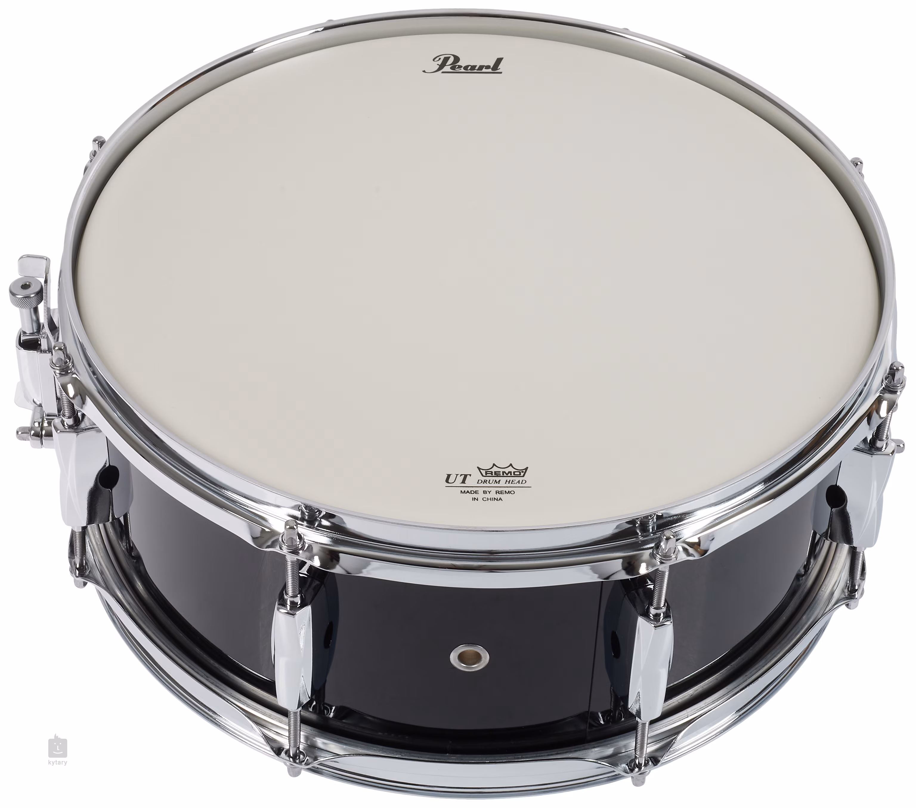 Hardware je chromovaný s osmi napínacími šrouby a přímo z továrny jsou nataženy blány Remo.