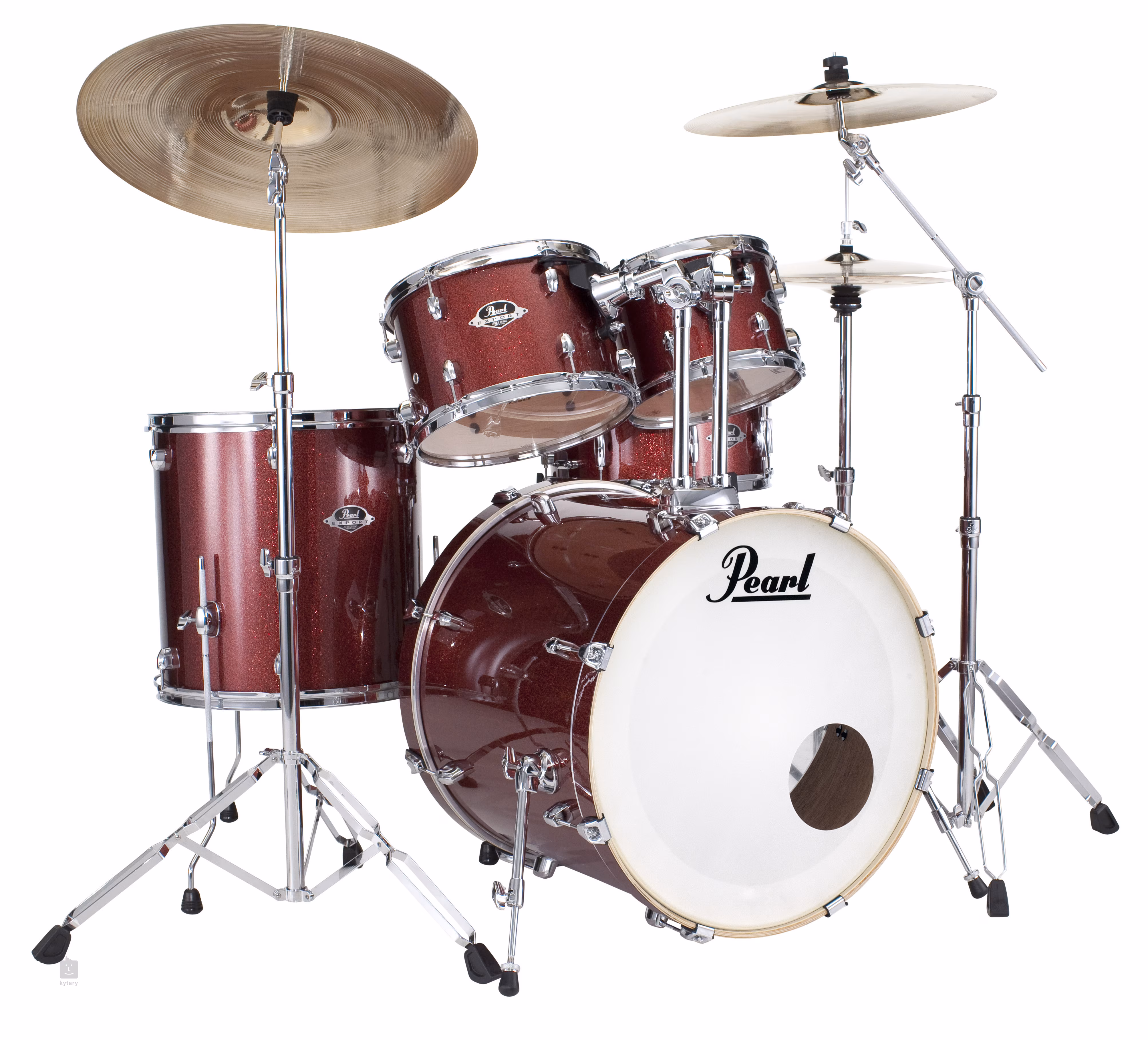 Sada Pearl Export obsahuje basový buben a k němu příslušný pedál, dva tomy, snare bubínek, sadu kvalitního hardwaru Pearl HWP-830 (rovný činelový stojan, šibenici, stojan na hi-hat, stojan na snare bubínek), dva držáky na tomy a blány Remo. Nechybí ani základní činely – 14palcový hi-hat, 16palcový crash a 20palcový ride.