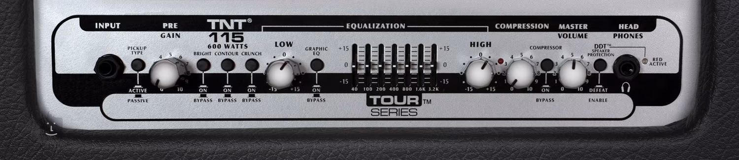 Kombo pro začínající hráče Peavey Tour TNT 115 je osazené 15 palcovým keramickým reproduktorem s tweeterem a zesilovačem s maximálním výkonem 600 W (300 W RMS). Oproti verzi TKO disponuje spínači Crunch, který napodobuje klasické lampové zkreslení a nastavitelným kompresorem pro vyrovnaný tón. Na ovládacím panelu se dále nalézají spínače zvýrazňující výšky (Bright) a specifickou EQ křivku (Contour), ovladače basů, výšek a sedmipásmový ekvalizér. Mimo sluchátkového výstupu na předním panelu se v zadní části nalézají výstupy pro externí reproduktor, efektová smyčka, výstup pro volitelný footswitch (On/Off Crunch, Compressor) a hlavně linkový D.I. výstup pro nahrávání a živé vystupování. Zkosená konstrukce boxu umožnuje lepší odposlech. Kombo je chráněno okruhy proti přebuzení, poškození reproduktoru hlasitostí, přehřátí a přetížení.