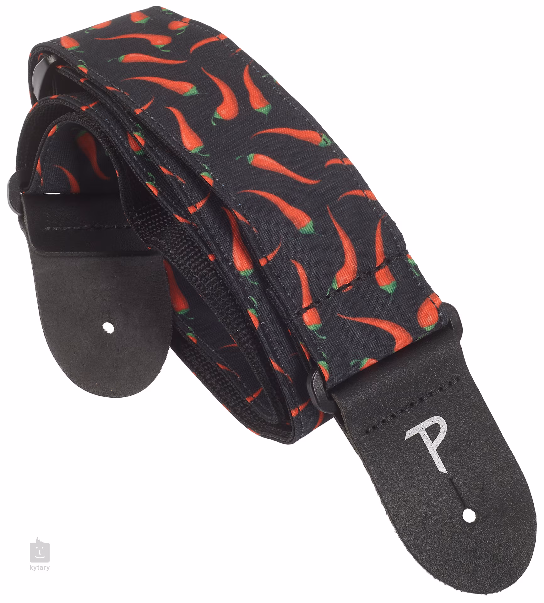Značka Perri’s Leathers nabízí pohodlné bavlněné popruhy zdobené výraznými vzory, které zaujmou na první pohled. Jsou vyrobeny z kvalitních, ale zároveň lehkých materiálů, které zajišťují pohodlné nošení a dlouhou životnost. Pevná kožená zakončení zaručují bezpečné uchycení nástroje. Samozřejmostí je také nastavitelná délka.
