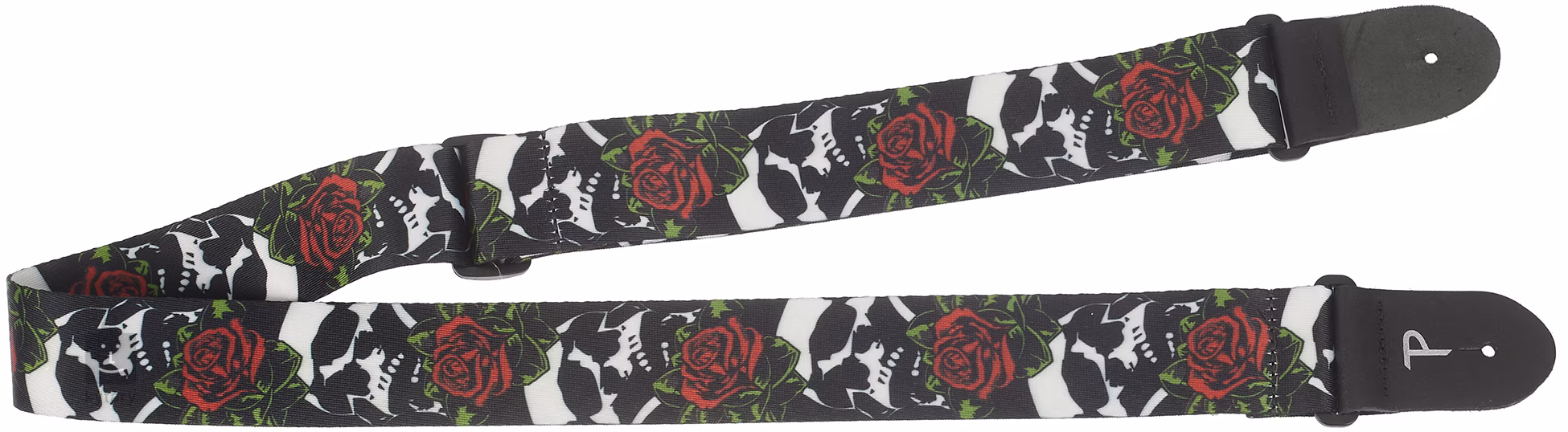 Značka Perri’s Leathers nabízí pohodlné popruhy zdobené výraznými vzory, které zaujmou na první pohled. Jsou vyrobeny z kvalitních, ale zároveň lehkých materiálů, které zajišťují pohodlné nošení a dlouhou životnost. Tento model je vyroben z odolných polyesterových vláken. Pevná kožená zakončení zaručují bezpečné uchycení nástroje. Samozřejmostí je také nastavitelná délka.