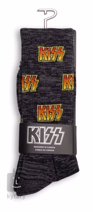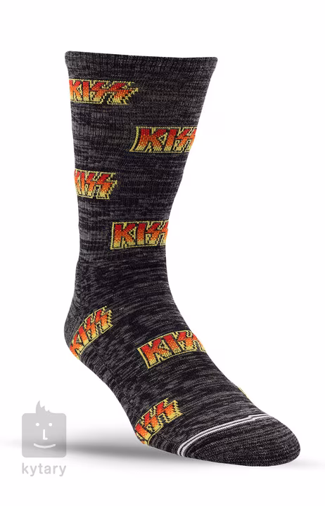 Pár ponožek KISS ALL OVER LOGO CREW ve velikosti L (Large, muži 9-12, ženy 11-14) a barevném provedení charcoal mix. Materiál 51% recyklovaný polyester, 36% bavlna, 11% nylon, 2% spandex.