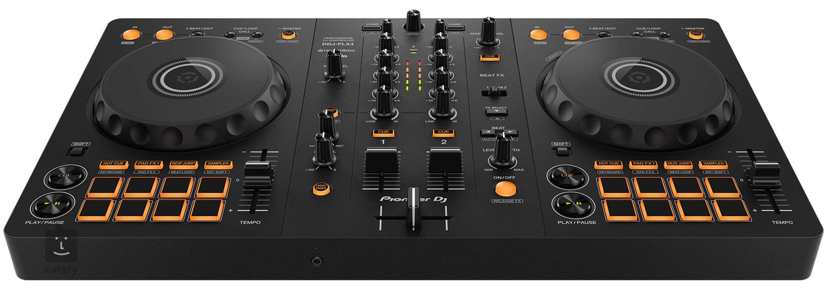 Kontroler má integrovaný 4-kanálový mixážní pult s kvalitními fadery a ovládacími prvky. Můžete snadno mixovat a přepínat mezi různými hudebními stopami, upravovat hlasitost, ekvalizaci a aplikovat efekty. Přední panel je ergonomicky navržen tak, abyste měli snadný přístup ke všem důležitým funkcím a ovládacím prvkům.