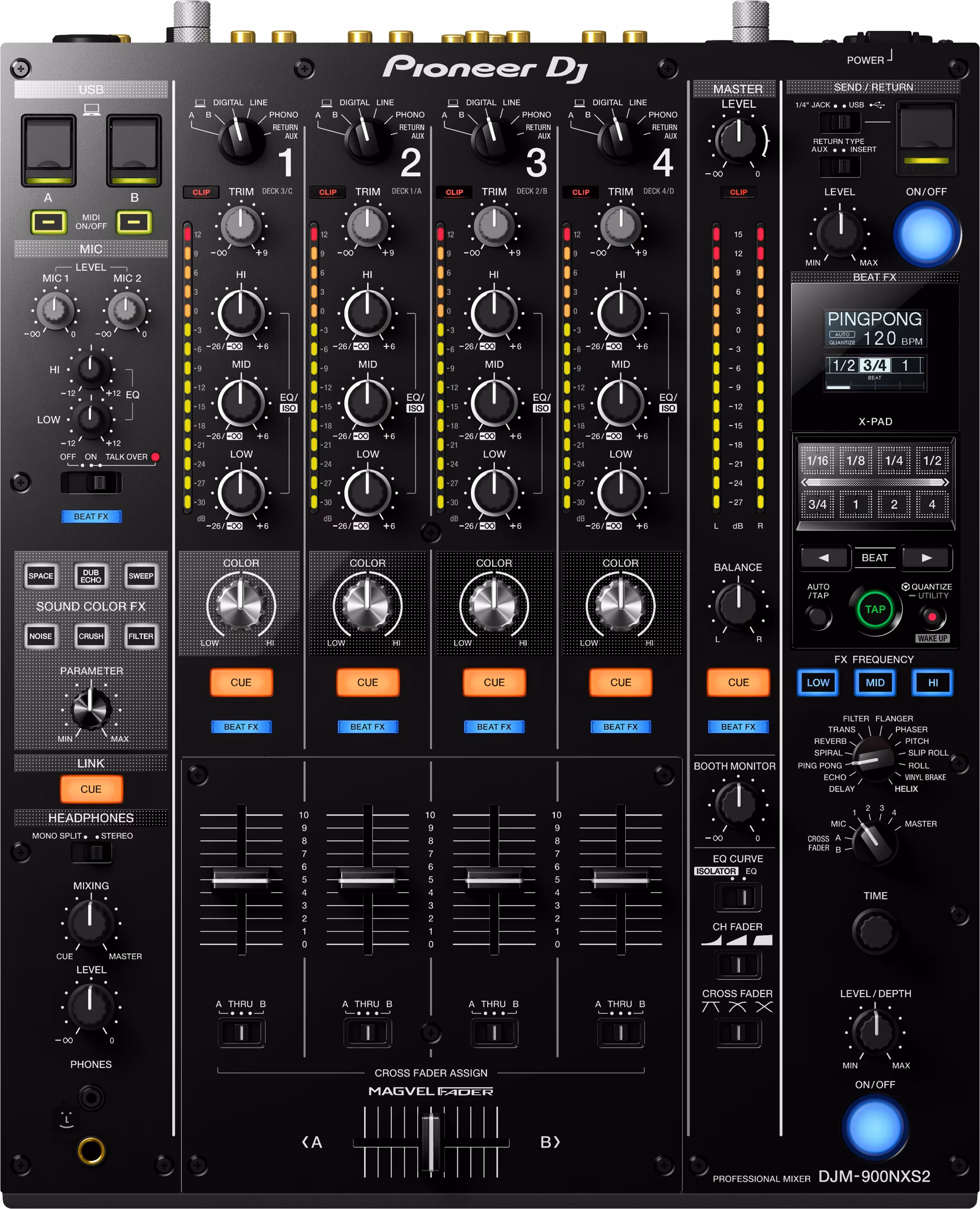 DJM-900NXS2 je propracovaný mixpult, který nabízí čtyři kanály s třípásmovými korekcemi a filtrem a především 64-bit kvalitu a vyladěné ekvalizéry pro úpravu zvuku v té nejvyšší kvalitě. Nechybí šest vynikajících efektů (sweep, filter, crush, dub, echo, noise a space) přiřaditelných na každý kanál ani sada čtrnácti beat efektů s úpravou parametru pomocí jednoho prstu, které reagují na tempo tracku. Efekty také můžete pomocí tlačítek lo, mid a hi přiřadit konkrétnímu frekvenčnímu pásmu. Zabudovaná USB zvuková karta s rozlišením 24bit/96 kHz, send/return vstupy, 4 phono vstupy a dva USB porty pak nabízí dostatečnou flexibilitu zapojení v analogovém i digitálním set-upu.
