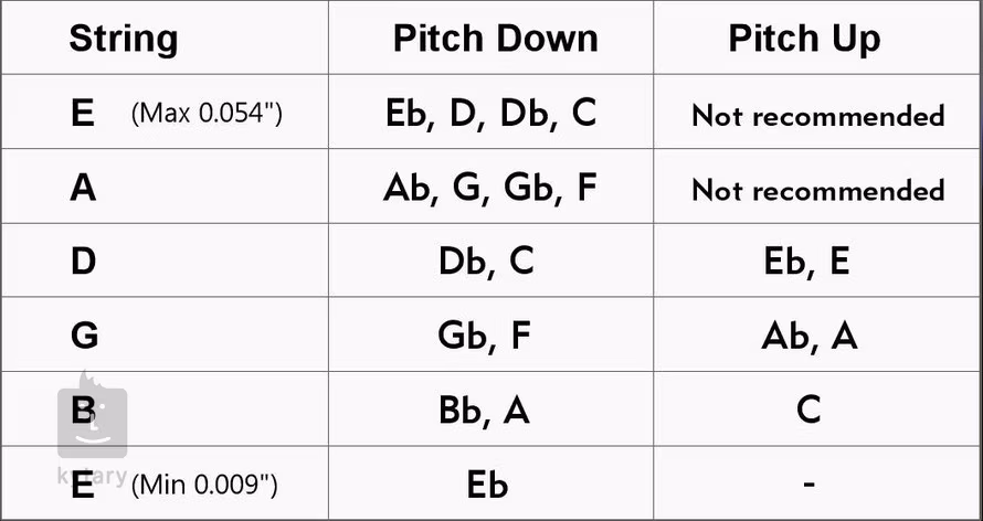 Tou nejdůležitější devizou PK-01 oproti jiným výrobkům, které nabízejí využití většinou pouze pro ladění drop D, je možnost přeladit strunu o větší počet intervalů a to směrem nahoru i dolů a také možnost použití jednotlivých přelaďovačů na více strunách. Limitováni jste v podstatě jen sílou struny (E max. 0.054) a dostatečným prostorem (min. 30 mm) mezi nultým pražcem a ladicím strojkem.