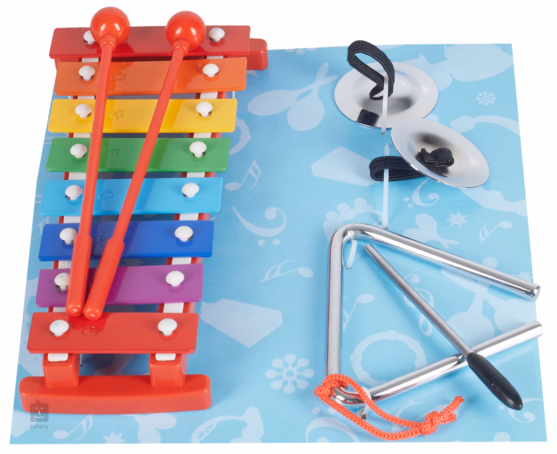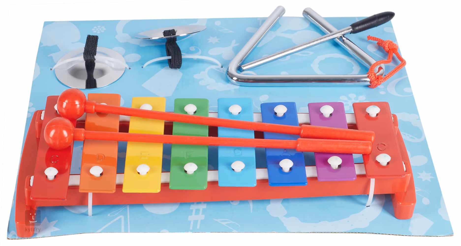 Perkusní sada pro začinající muzikanty. V balení naleznete zvonkohru s párem plastových paliček v C lazení, pár činelků a triangl s paličkou.