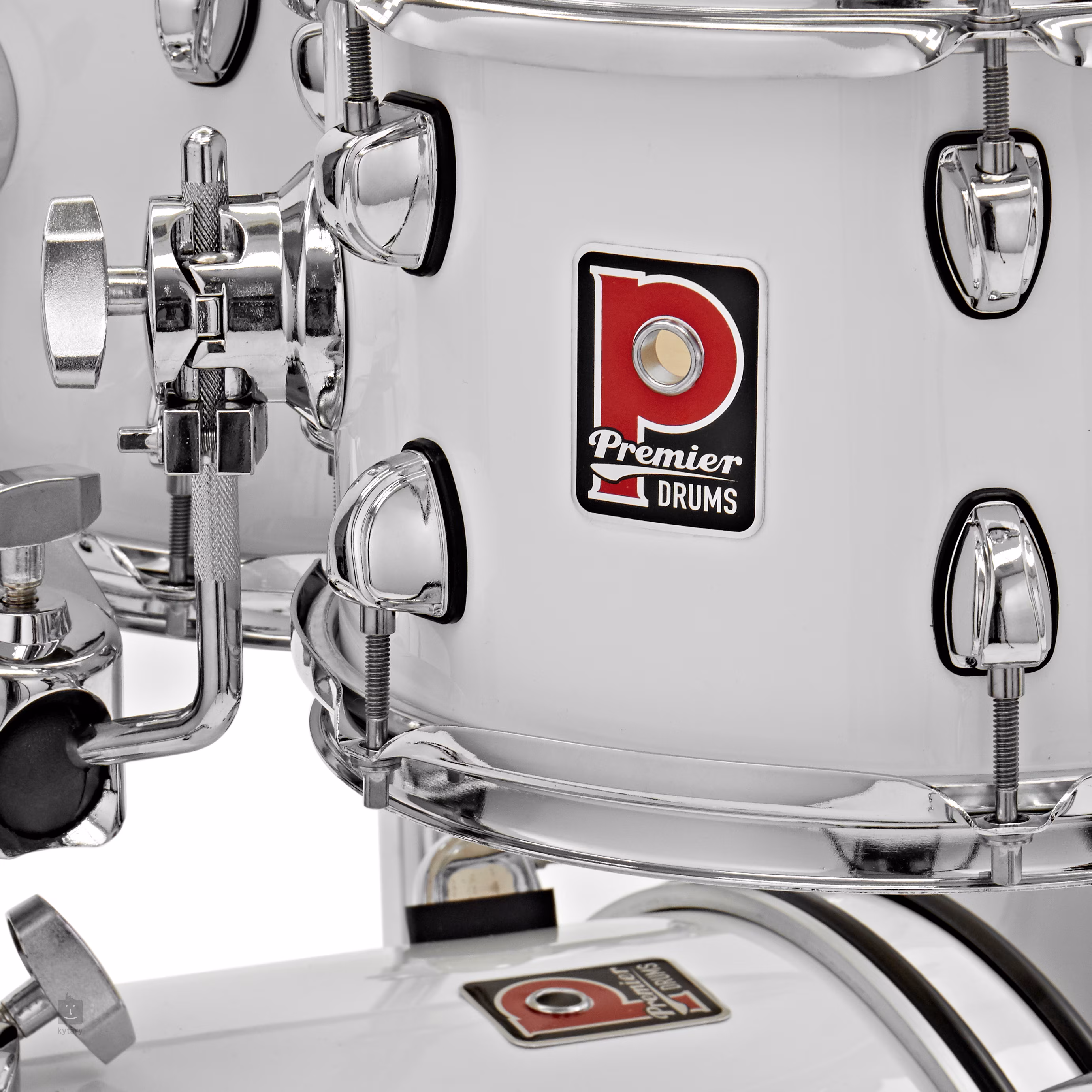 Součástí balení je také činelový set zahrnující 14" hi-hat a 16" crash/ride, které poskytují jasný, vyvážený zvuk ideální pro různé žánry. Pro další rozšíření zvukových možností nabízí Premier i volitelné doplňkové sady činelů, například 10" splash nebo 20" crash.