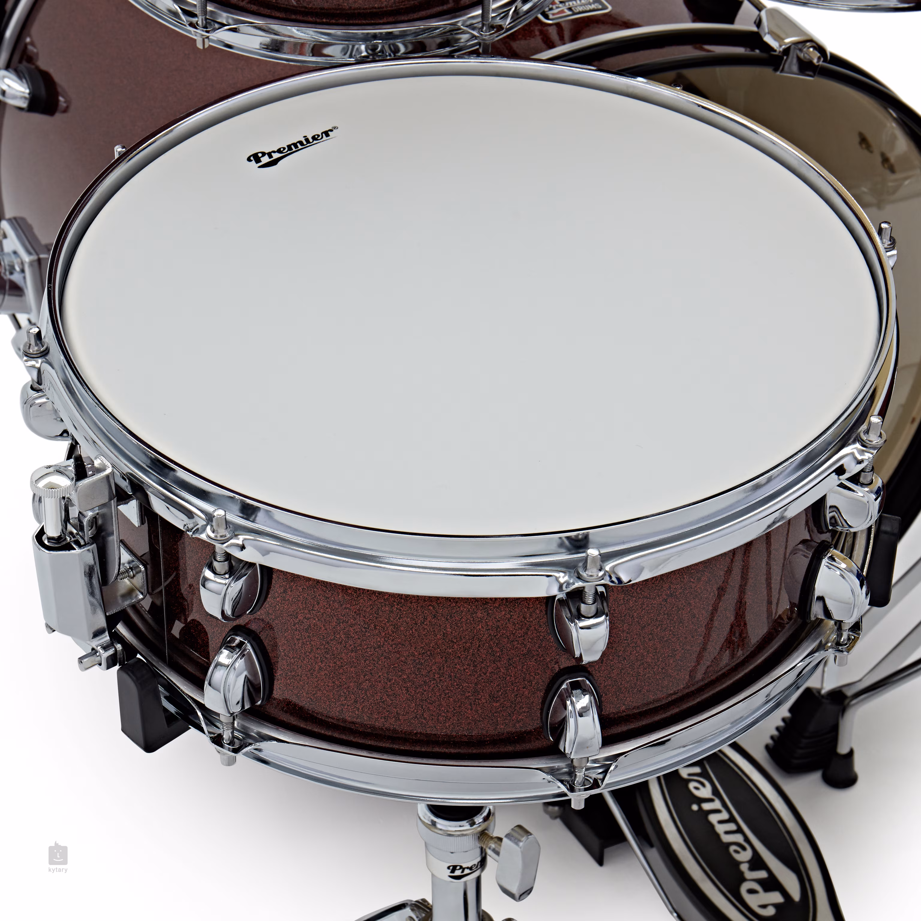 Systém Premier Low-Mass Lugs zajišťuje spolehlivé ladění a dlouhodobou stabilitu, zatímco trojité ocelové ráfky (Triple Flanged Steel Hoops) dodávají ostré rimshoty a lepší kontrolu tónu. Celá sada má navíc odolnou PVC povrchovou úpravu, která chrání korpusy před poškozením a dodává jim elegantní vzhled.