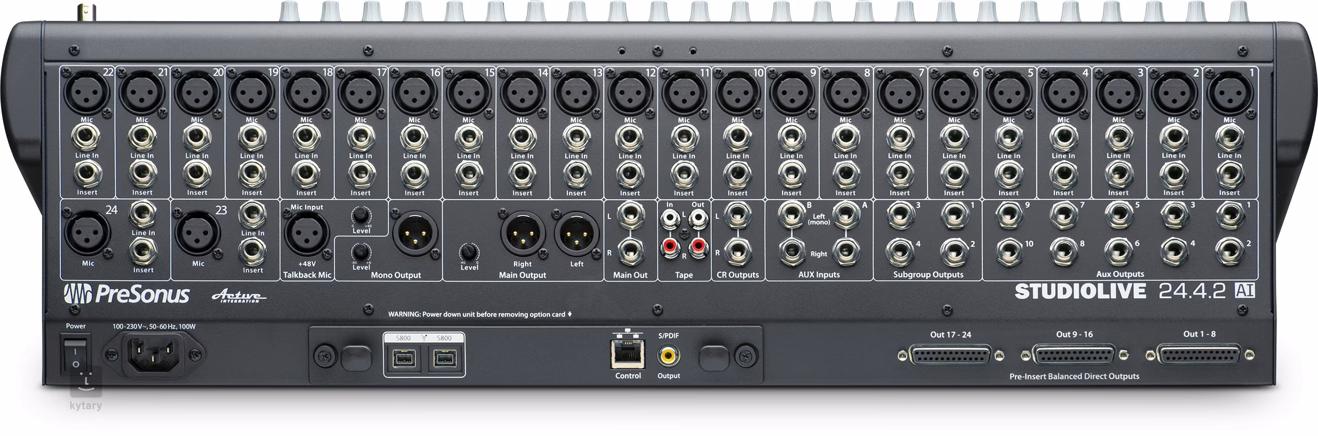 StudioLive 24.4.2AI je 24-kanálový digitální mixpult a FireWire audio rozhraní, které nabízí spoustu nástrojů nejen pro živé zvučení, ale také pro záznam ve studiové kvalitě. 24 mikrofoních preampů PreSonus XMAX a integrovaný vysoce výkonný DSP procesor zajistí vysokou zvukovou kvalitu a flexibilní processing. S pomocí vestavěných portu FireWire 800, LAN a WiFi lze snadno mixpult použít jako záznamové zařízení a ovládat jej dálkově z počítače nebo tabletu. Hledáte-li mixážní pult, který nabízí velké množství pokročilých funkcí a vysokou kvalitu zvuku za přijatelnou cenu, je StudioLive 24.4.2AI řešením právě pro vás.