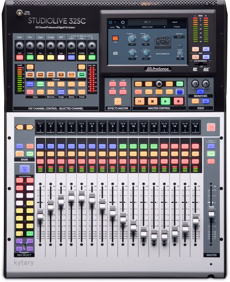 Digitální mixážní pult a rekordér StudioLive 32SC rozšiřuje třetí generaci řady StudioLive a stejně jako jeho předchůdci je navržen jak pro studiovou práci, tak i pro živé zvučení. Kompletně přepracovaný signal processing nabízí EQ a kompresi ve vintage stylu na každém kanále. K dispozici je 16 Mikrofonních preampů s digitálním řízením a možností uložení, 17 motorizovaných faderů a vestavěný slot pro SD kartu pro multitrackový záznam,. playback a tzv. virtuální zvukové zkoušky. Hudebníci ve studiu či na pódiu mohou mít plnou kontrolu nad svými monitory pomocí aplikace QMix pro smartphony. Kompletně lze pak celý systém ovládat i z počítače PC/MAC nebo tabletu s Windows nebo iOS.