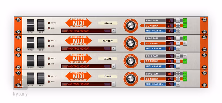 Virtuální racková jednotka v kombinaci se samostatným MIDI sequencerem. Manipulace s jednotlivými editory je pak naprosto stejná, jako v reálném studiovém prostředí.