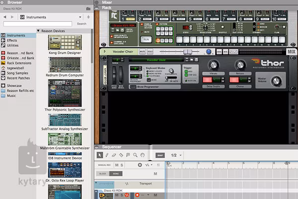 Reason obsahuje sekvencer, ReGroove Mixer, arpegiator RPG-8 a syntezátor Thor. Sekvencer má vektorovou automatizaci a vícenásobné automatizační křivky pro jednu stopu s automatizací tempa.