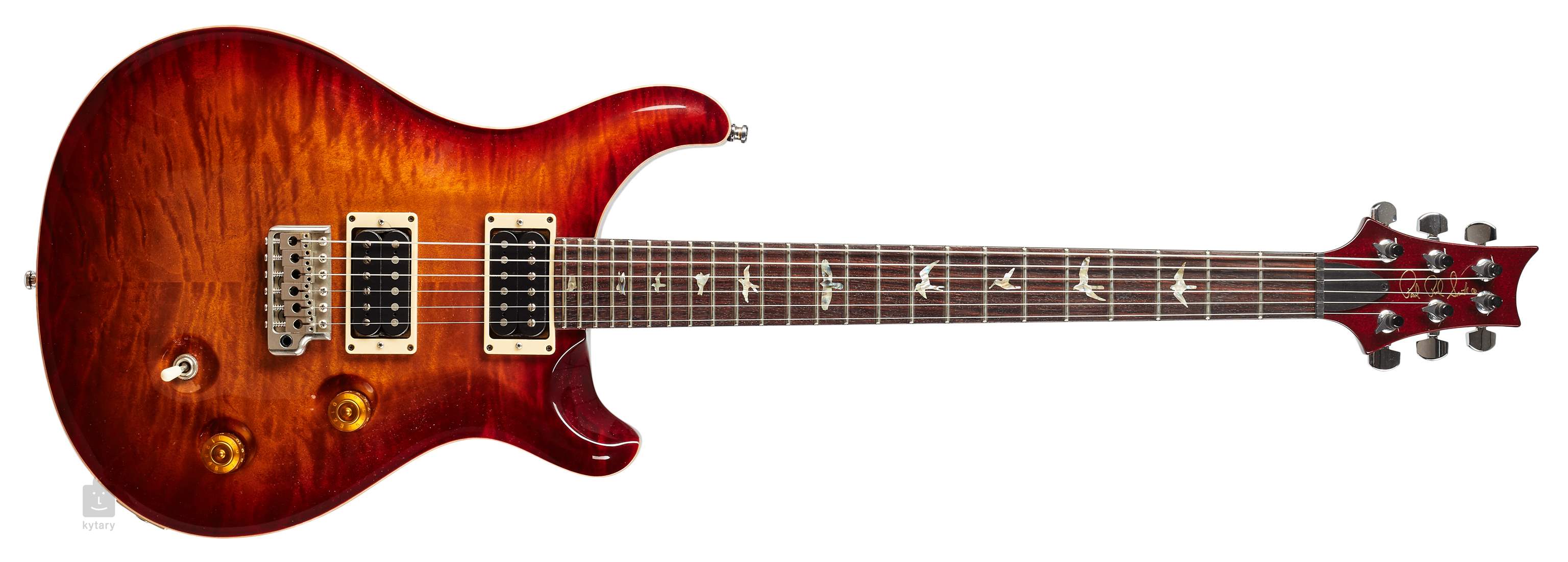 Mahagonové "doublecut" tělo s vybíraným javorovým topem, který prosvítá přes transparentní sunburst lak a mahagonový krk s lepeným spojem. Palisandrový hmatník zdobený letícími opeřenci zahrnující sokola, jestřába, kolibříka či vrabce. Dvojice humbuckerů a jednozvratné tremolo.