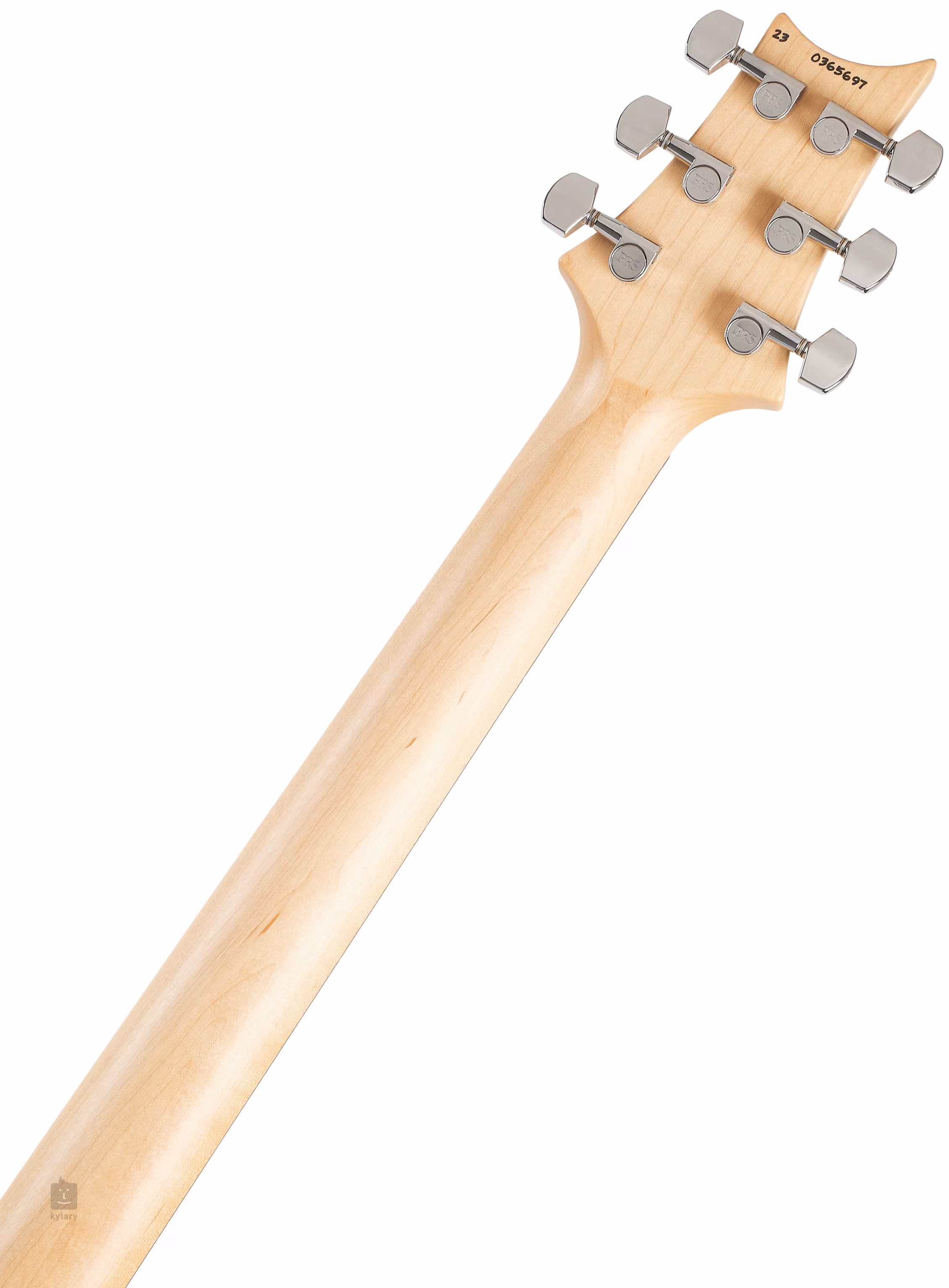 Ergonomicky tvarované mahagonové tělo kytary s charakteristickým PRS double-cut designem zdobí efektní top z fládrovaného javoru podpořený barevnou úpravou a finišem Nitro over Cellulose (CAB). K javorovému krku s profilem Pattern Thin je přilepen palisandrový hmatník osazený čtyřiadvaceti pražci. Orientaci po ploše hmatníku usnadňují polohové značky v podobě perleťových ptačích siluet.