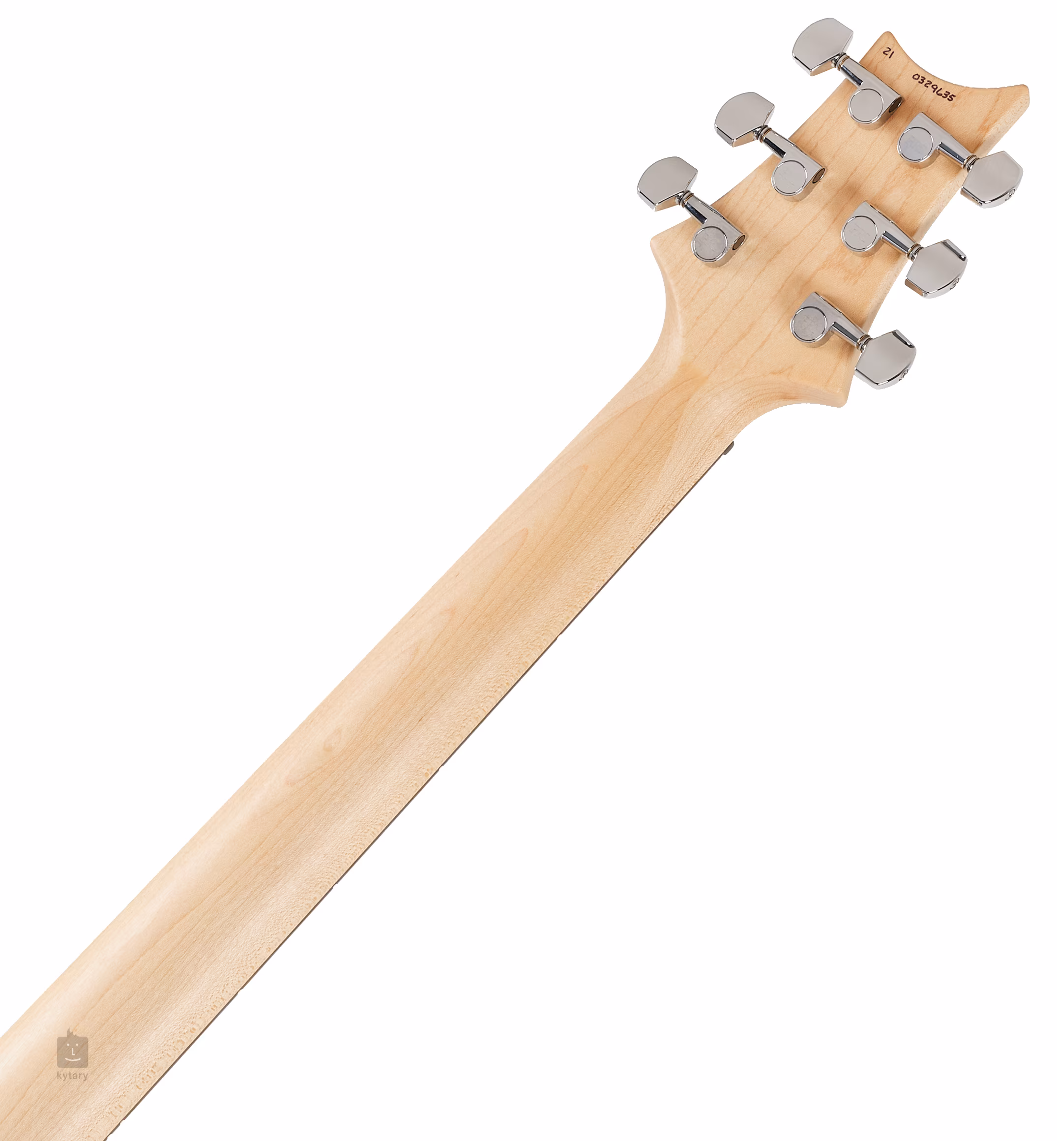 Model CE 24 Semi-Hollow nabízí ergonomický tvar elektrických kytar PRS se dvěma výřezy v kombinaci s rezonantní pololubovou konstrukcí těla. Samotné mahagonové tělo kytary zdobí efektní top z fládrovaného javoru podpořený barevnou úpravou a finišem Nitro over Cellulose (CAB). K javorovému krku s profilem Pattern Thin je přilepen palisandrový hmatník osazený čtyřiadvaceti pražci. Orientaci po ploše hmatníku usnadňují polohové značky v podobě perleťových ptačích siluet.