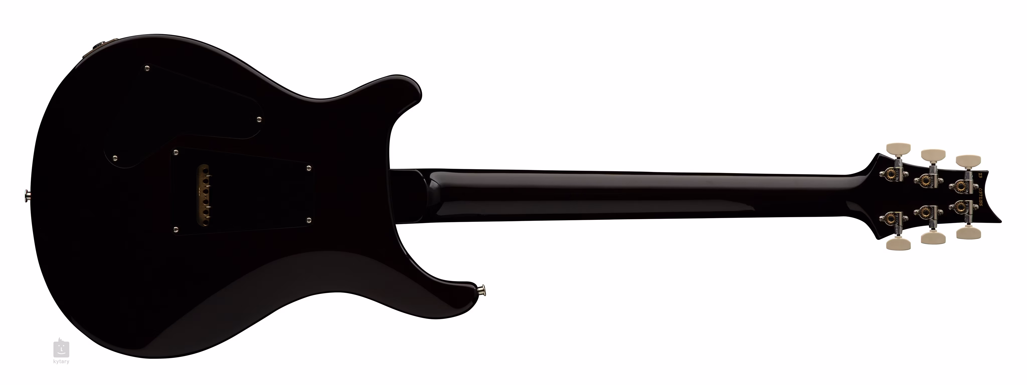 Model Custom 24-08 Black Gold Wraparound Burst už na první pohled upoutá kombinací ergonomicky tvarovaného mahagonového těla s typickým dvojitým PRS výřezem a topu z figurovaného javoru s parádní kresbou dřeva. Ke krku z jednoho kusu mahagonu s profilem Pattern Thin je přilepen palisandrový hmatník osazený čtyřiadvaceti pražci. Orientaci na hmatníku usnadňují trademark PRS polohové značky v podobě perleťových ptačích siluet.