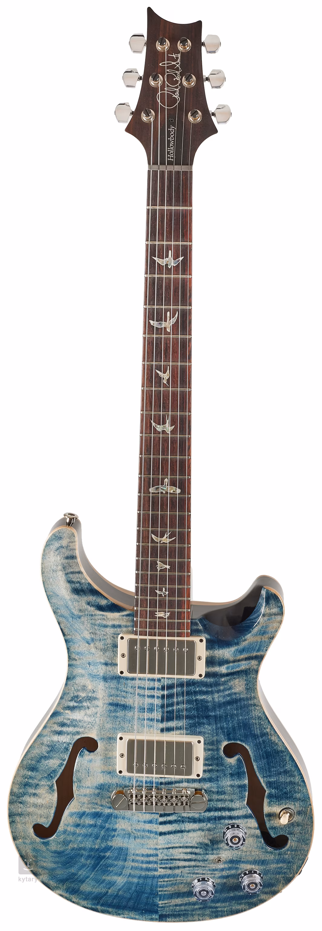 Model Hollowbody II Piezo nabízí rezonantní zvuk lubového těla složeného z přední a zadní desky z figurovaného javoru a mahagonových lubů. K mahagonovému krku s profilem Pattern je přilepen palisandrový hmatník zdobený typickými polohovými značkami v podobě ptačích siluet.
