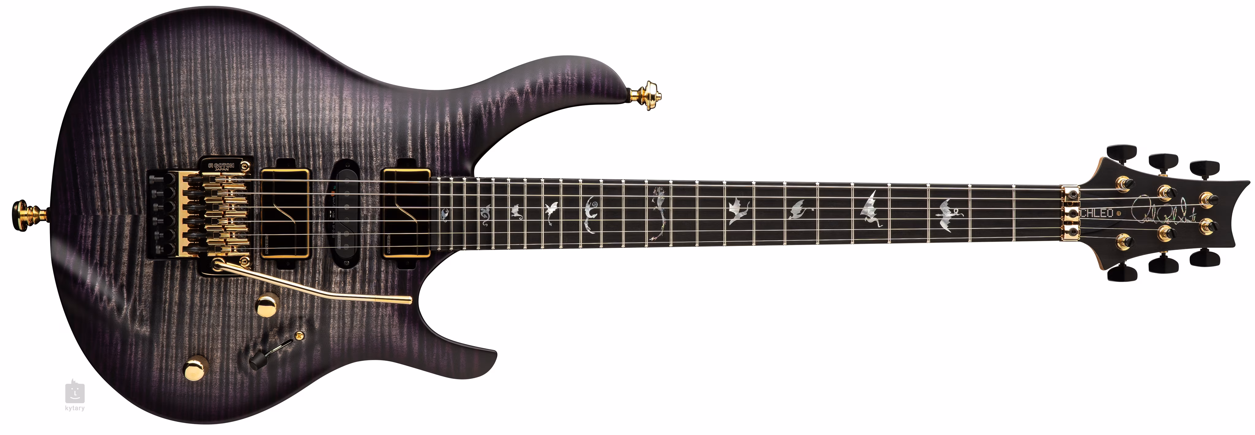 LE Chleo Herman Li Charcoal Purple Wraparound Burst je signature model Hermana Li ze známé powermetalové formace Dragonforce, který kytaru pojmenoval po svém dítěti (Chleo). Jedná se špičkový nástroj z limitované řady americké značky PRS (v roce 2025 bude vyrobeno jen 200 modelů).
