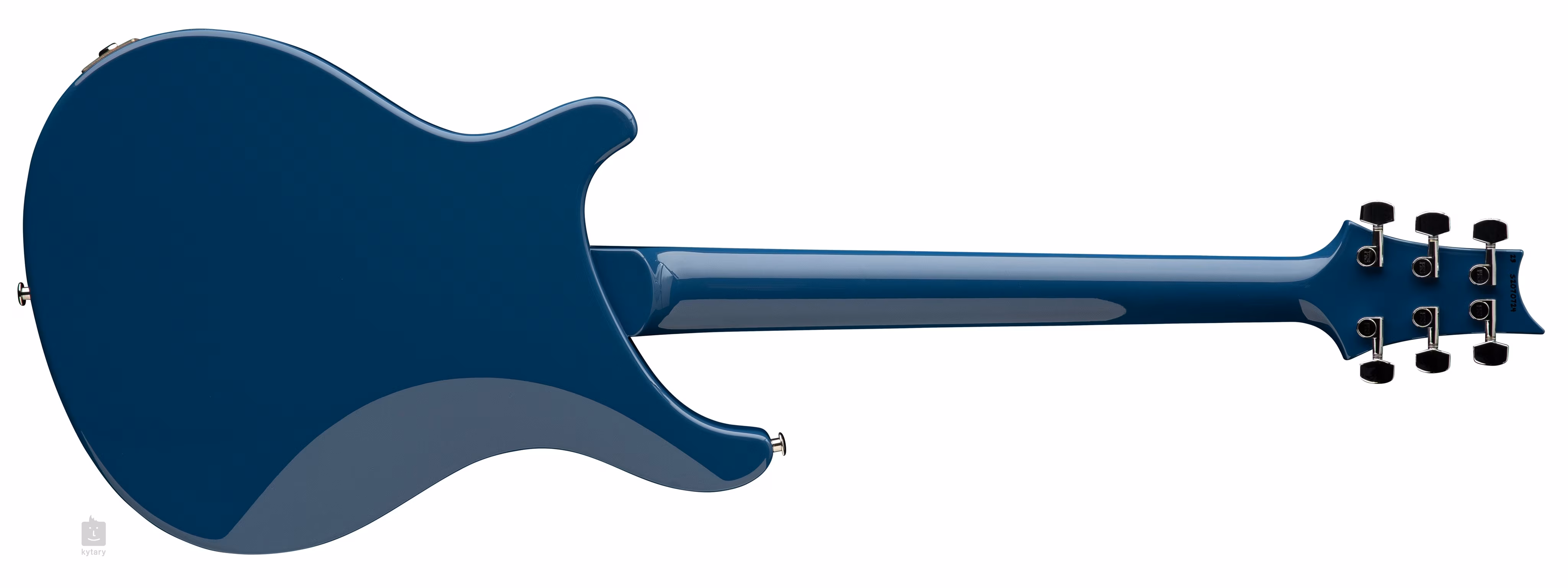 Mahagonové tělo kytary S2 Vela Space Blue zdobí lesklý nitrolak. K mahagonovému krku s profilem Pattern Regular je přilepen palisandrový hmatník osazený dvaadvaceti pražci. Orientaci na hmatníku usnadňují polohové značky v podobě ptačích siluet.