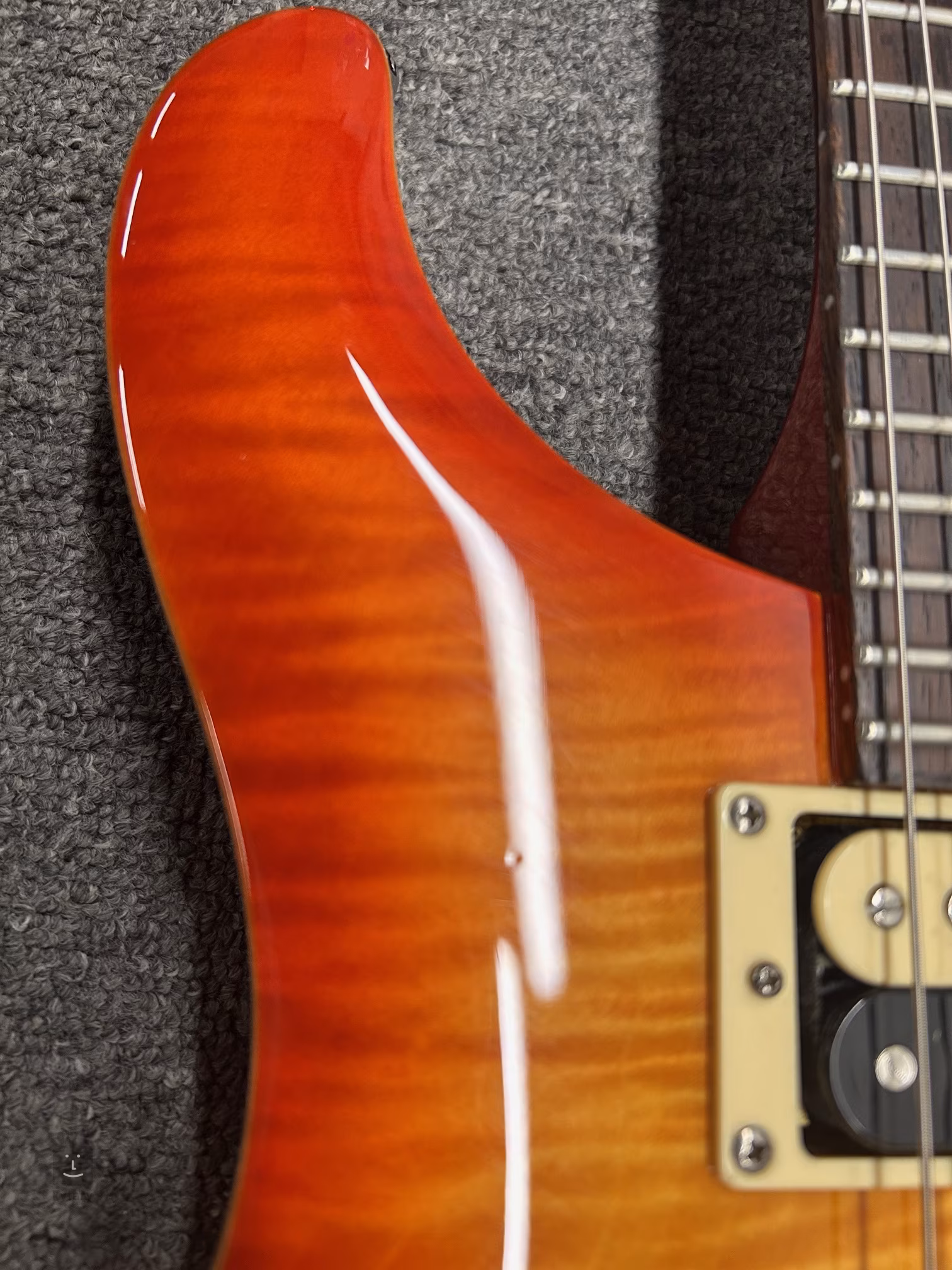 Mahagonové tělo kytary zdobí javorový top a efektní vrchní dýha fládrovaného javoru. K javorovému krku s profilem Wide Thin je přilepen palisandrový hmatník osazený čtyřiadvaceti pražci. Orientaci po ploše hmatníku usnadňují polohové značky v podobě perleťových ptačích siluet. Dvojice firemních humbuckerů poskytuje kytaře čistý zvuk s průraznými středy. Jeho charakter lze upravovat pomocí potenciometrů hlasitosti, tónové clony, třípolohovým přepínačem snímačů a zmíněnými mini coil-tap switchi. Plný zvuk humbuckerů tak můžete ve vteřině proměnit v autentický tón single-coil snímačů, případně kombinovat oba zvuky