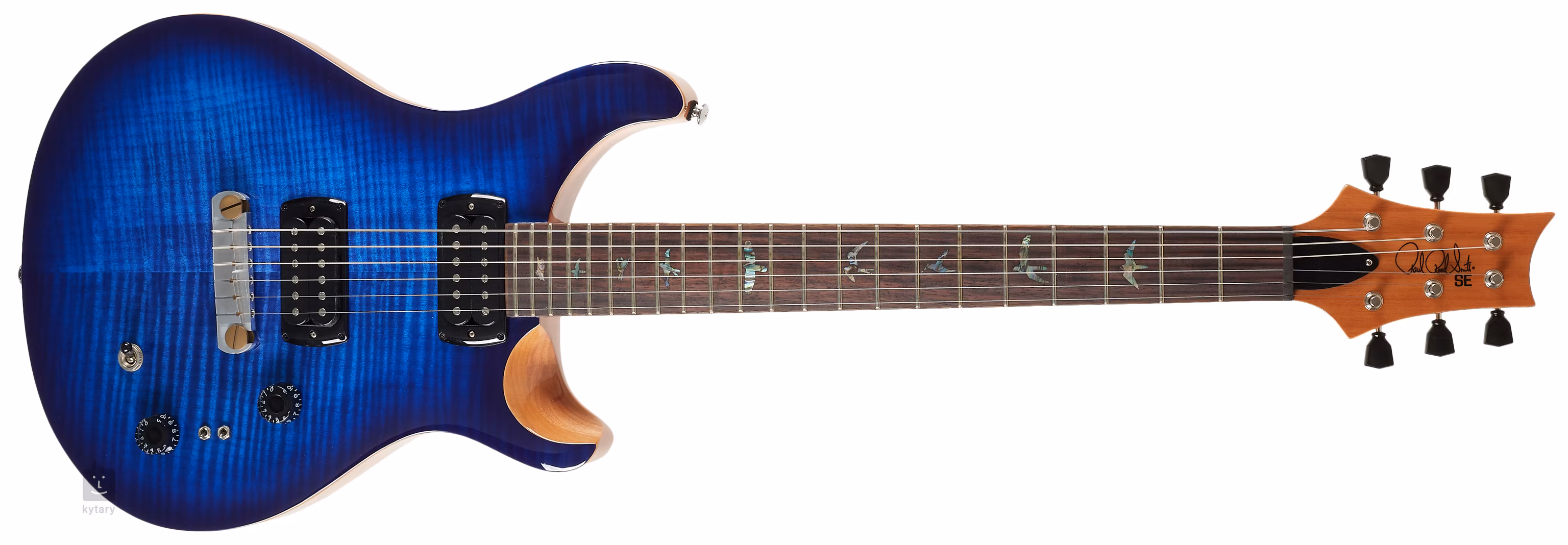 Kytara už na první pohled upoutá masivním ergonomicky tvarovaným mahagonovým tělem s typickým dvojitým PRS výřezem, vyřezaným javorovým topem a působivou vrchní dýhou z fládrovaného javoru. K mahagonovému krku s profilem Wide Fat je přilepen palisandrový osazený dvaadvaceti pražci a vyzdobený tradičními PRS polohovými značkami s ptačími siluetami.