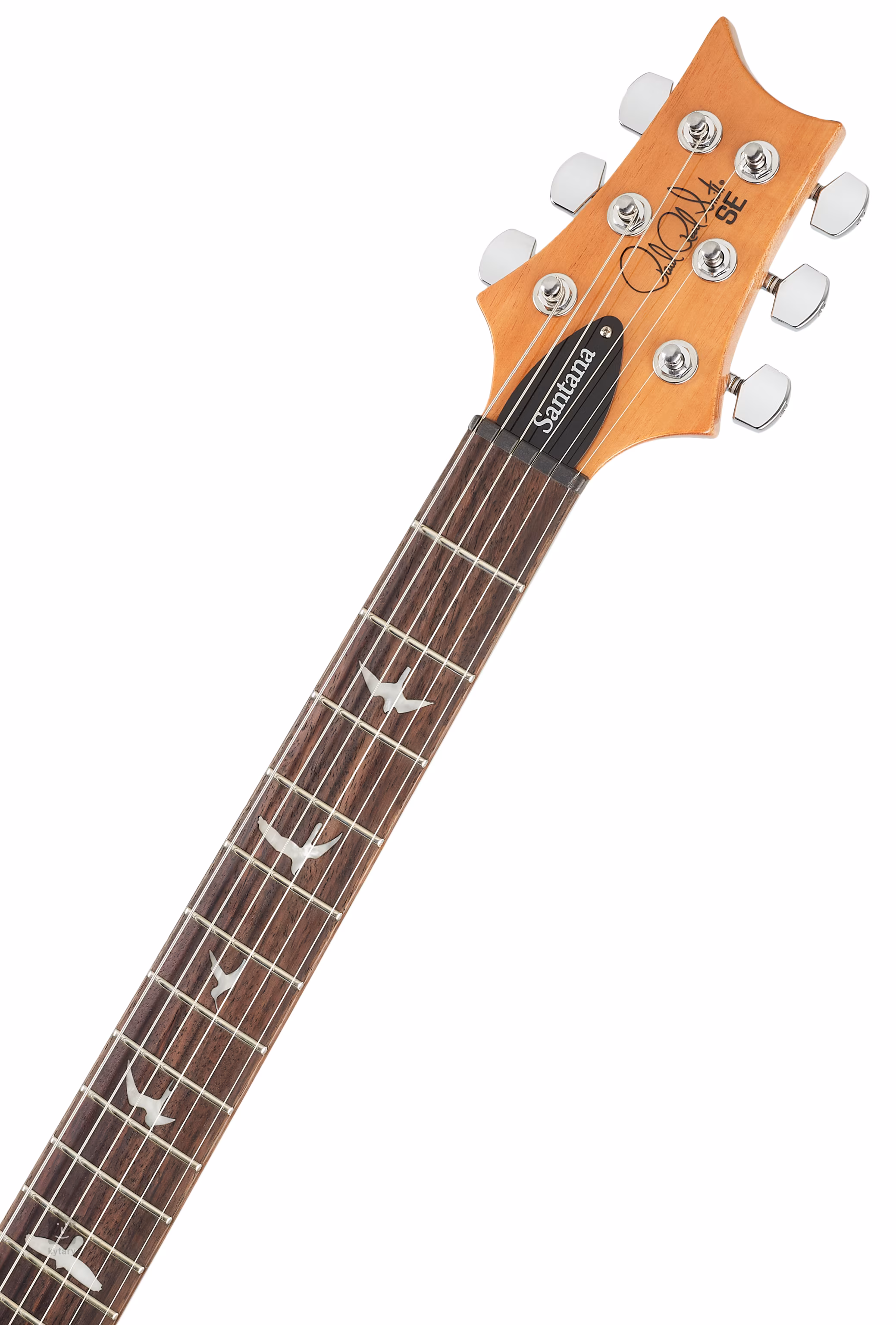Dvojice humbuckerů poskytuje kytaře vřelý, konkrétní, zvuk, kterým vykouzlíte jak typická santanovská sóla, tak i hutný, rockový, overdrive. Barvu zvuku lze kontrolovat ovladačem hlasitosti a tónové clony. Nechybí třípolohový přepínač, kterým vyberete mezi jednotlivými snímači nebo zapojíte oba. Struny jsou usazeny v továrním patentovaném tremolu, stabilitu ladění zaručují kvalitní PRS mechaniky.
