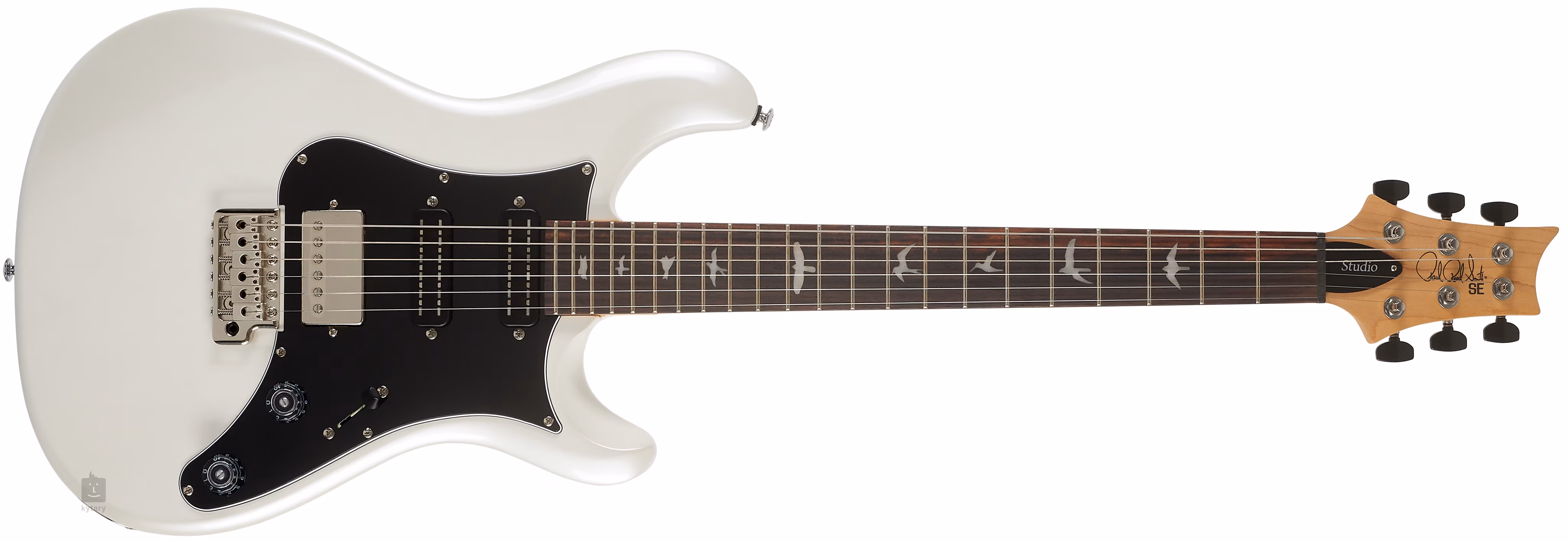 Tělo elektrické kytary SE Studio Standard Pearl White 2026 je zhotoveno z mahagonu. K přišroubovanému javorovému krku s profilem Wide Thin je přilepen palisandrový hmatník osazený dvaadvaceti pražci. Orientaci na hmatníku usnadňují PRS polohové značky v podobě ptačích siluet.