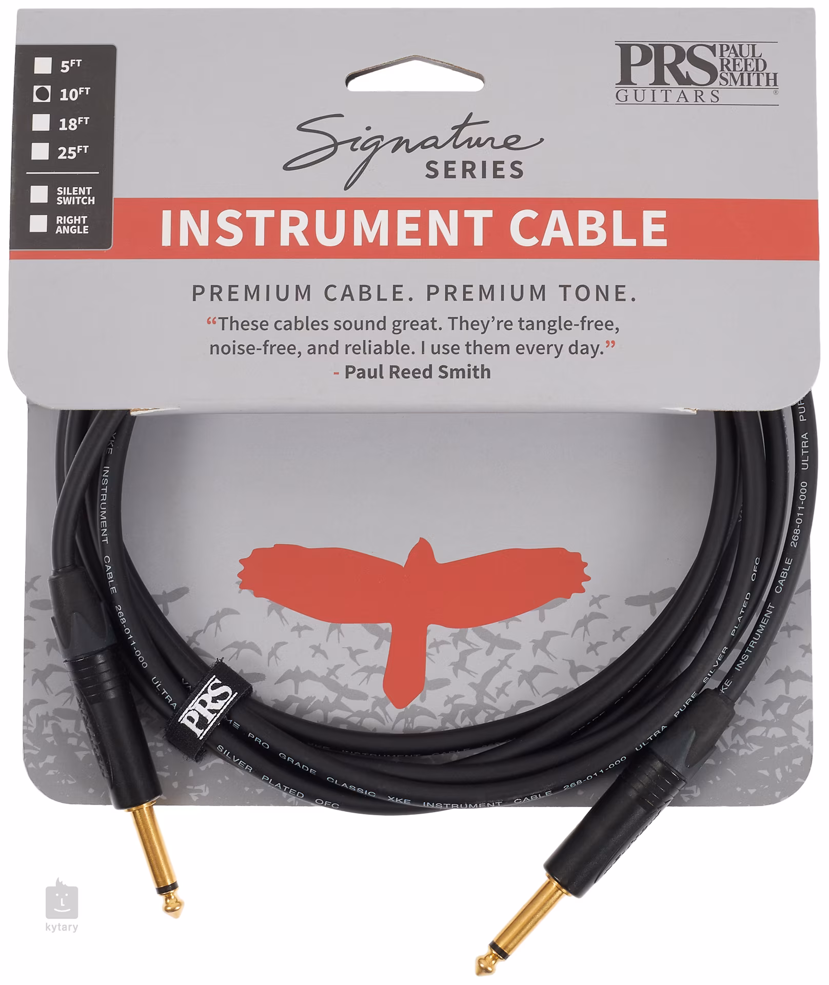 Kabely značky PRS ze série Signature jsou pečlivě navrženy a vyráběny tak, aby přenesly váš tón zcela čistě a bez jakéhokoliv rušení. Pravděpodobně jste věnovali spoustu času a peněz výběru vaší kytary, aparátu a efektů, proč je tedy nespojit tím úplně nejlepším? Kabely PRS jsou vyráběny přímo v Anglii firmou VanDamme Cabling – jejich produkty naleznete nejen u hvězd jako Radiohead, Coldplay a Foo Fighters, ale také v Abbey Road Studios.