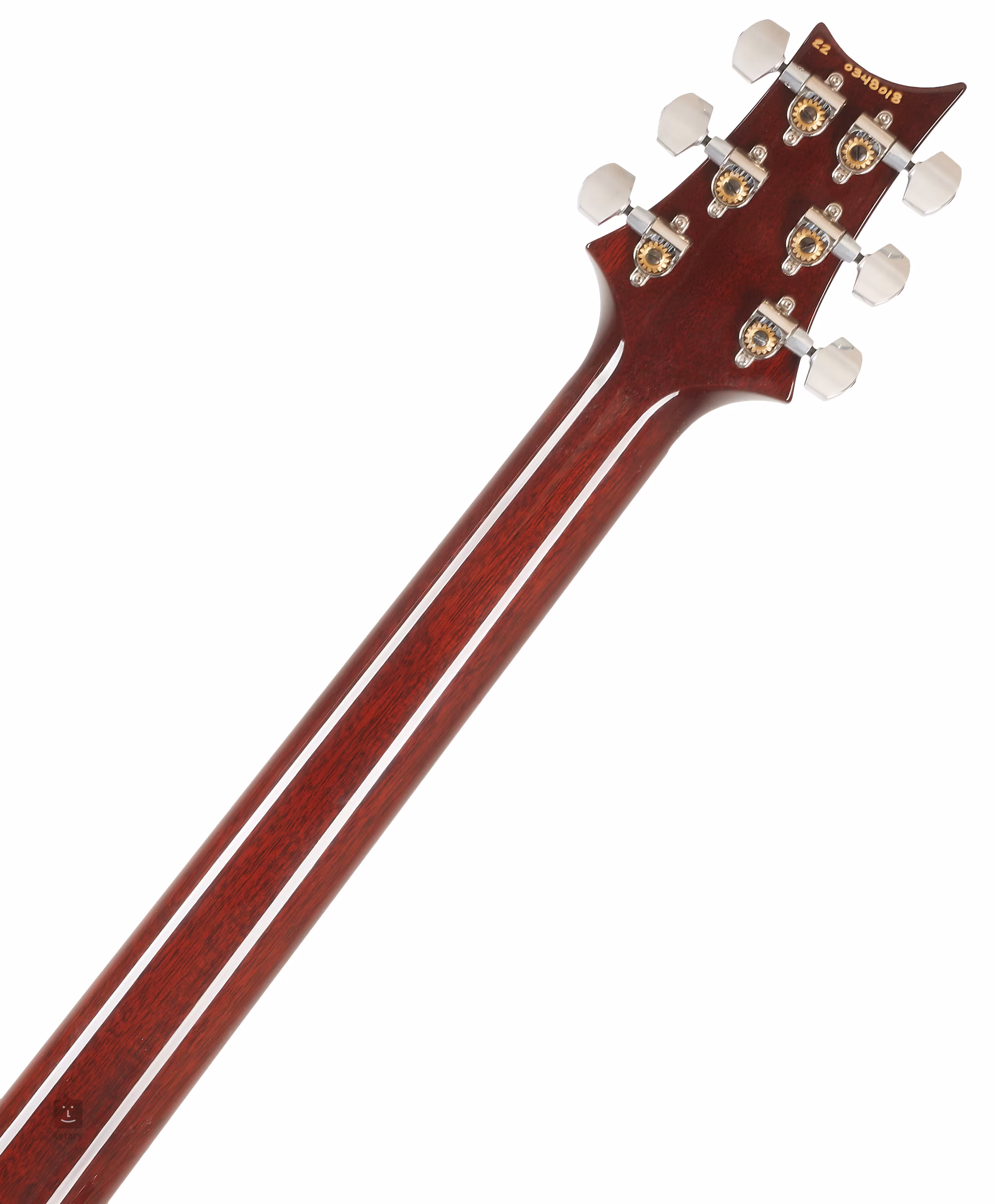 Masivní ergonomicky tvarované mahagonového tělo s typickým dvojitým PRS výřezem zdobí javorový top. K mahagonovému krku s profilem Pattern je přilepen palisandrový hmatník ozdobený typickými polohovými značkami v podobě ptačích siluet.