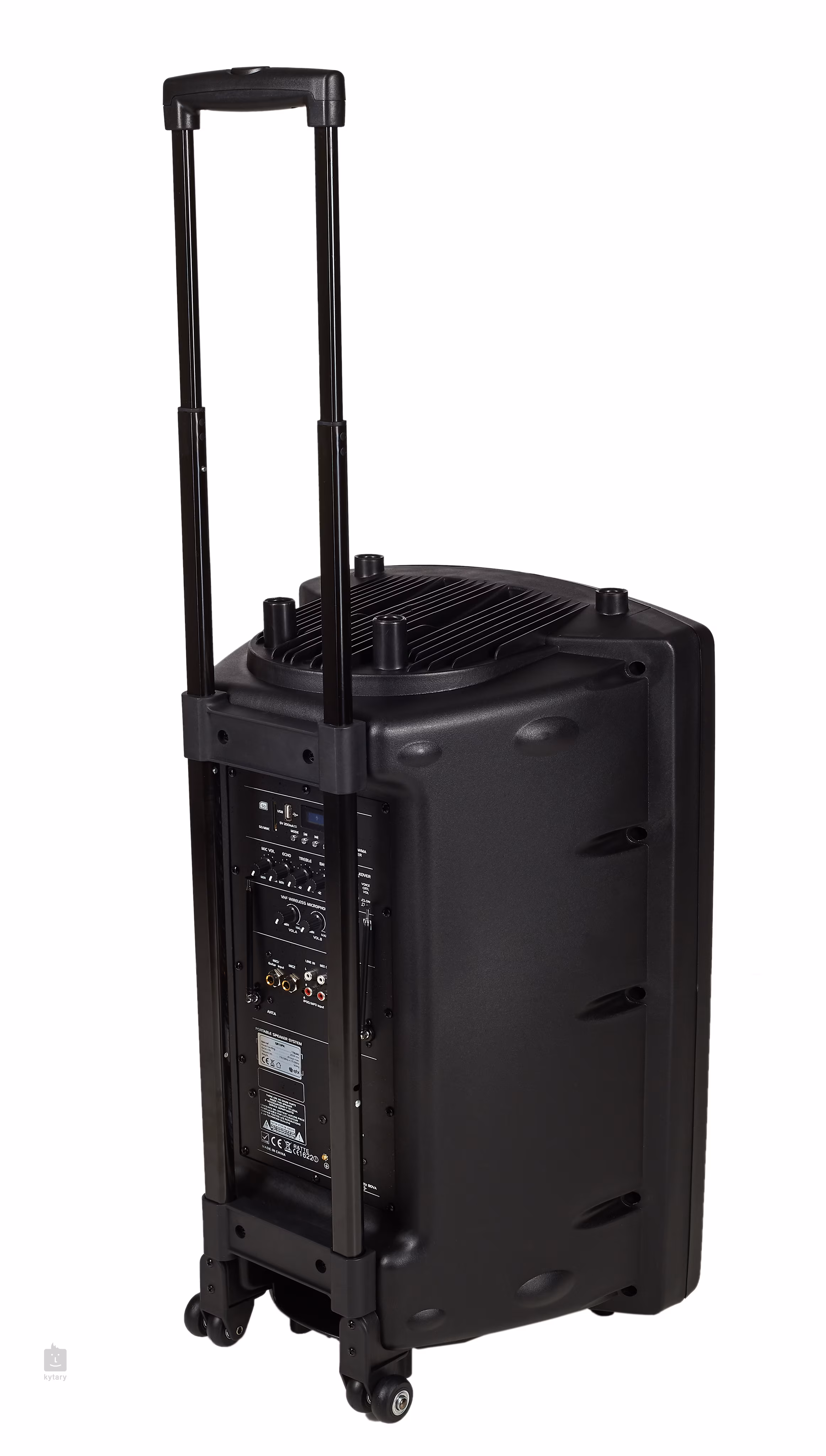 Přenosný PA 15" řečnický systém řady QR. Vestavěný zesilovač napájený ze sítě nebo interního nabíjecího akumulátoru (provoz na akumulátor až 8 hodin). Součástí dodávky 2x VHF ruční bezdrátový mikrofon (frekvence 174.1MHz + 175.0MHz), zabudovaný přijímač a zesilovač na zadní straně, spolu s další 2 mikrofonními vstupy (s echo efektem). Vstupy: linkový / USB / SD. Zasouvací rukojeť a kolečka, zajišťující snadnou přenositelnost. Napájení: externí - 220/240V AC, 50/60Hz, interní - zabudovaný akumulátor 12V (provoz až 8 hodin) Výstupní výkon: 250 W / RMS Vstupy: 2 x Mic a 1 Aux Rozměry: 685 x 440 x 380 mm Hmotnost: 18,4 kg