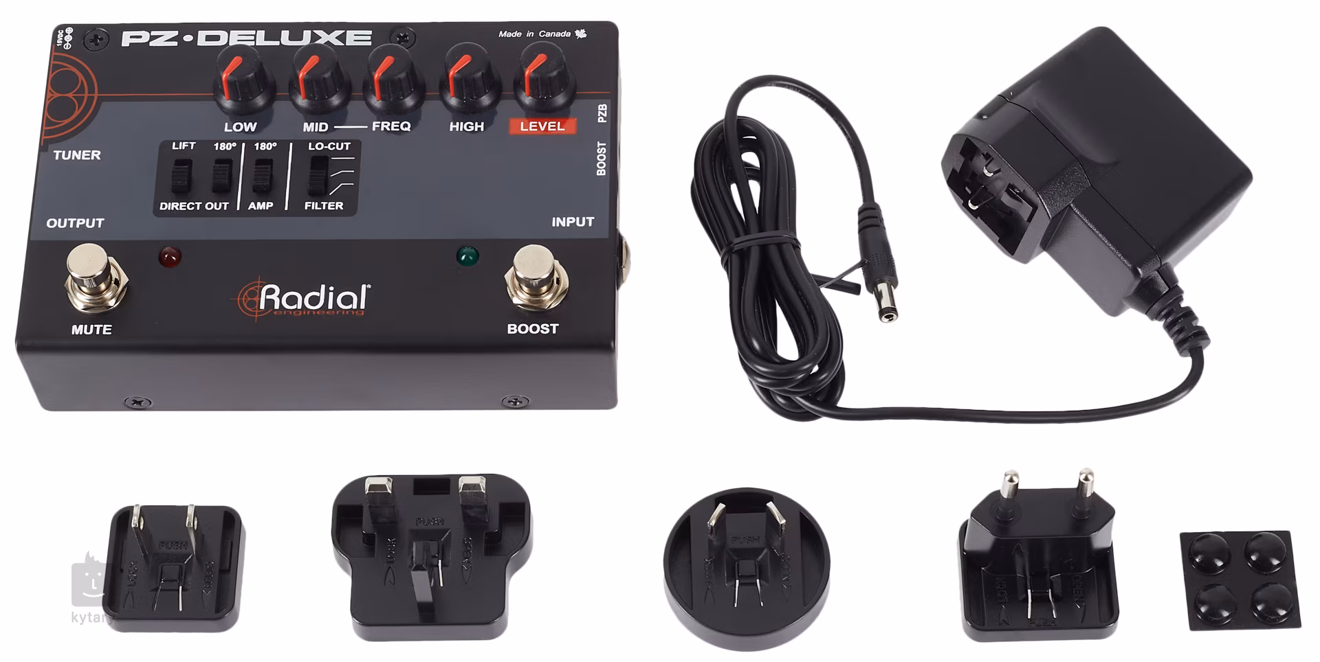 PZ-Deluxe je akustický předzesilovač, který je schopen poskytnout výjimečnou dynamiku prakticky jakémukoliv akustickému nástroji, ať už s piezo, magnetickým, či jiným systémem snímání. Při využití s piezo snímači stačí zapnout PZB obvod, který zvýší vstupní odpor tak, aby poskytl piezo snímačům přirozený a příjemný zvuk. Trojpásmový ekvalizér s volitelnými středovými frekvencemi vám pak umožní detailně nastavit požadovaný zvuk, low cut filter a přepínač polarity zase vyřeší problémy se zpětnou vazbou. PZ-Deluxe je vybaven také kvalitním DI systémem, pomocí kterého můžete bez hluku vést balancovaný signál do PA systému i přes kabely dlouhé více než 100 metrů. Kromě toho najdete na pedálu také funkce mute a boost.