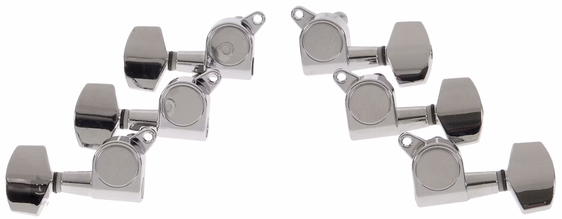 Ladicí mechaniky pro elektrickou kytaru. Jsou vyrobeny z kovu v chromové povrchové úpravě, kolíčky jsou také kovové. Vhodné pro nástroje s rozložením mechanik ve stylu 3+3.