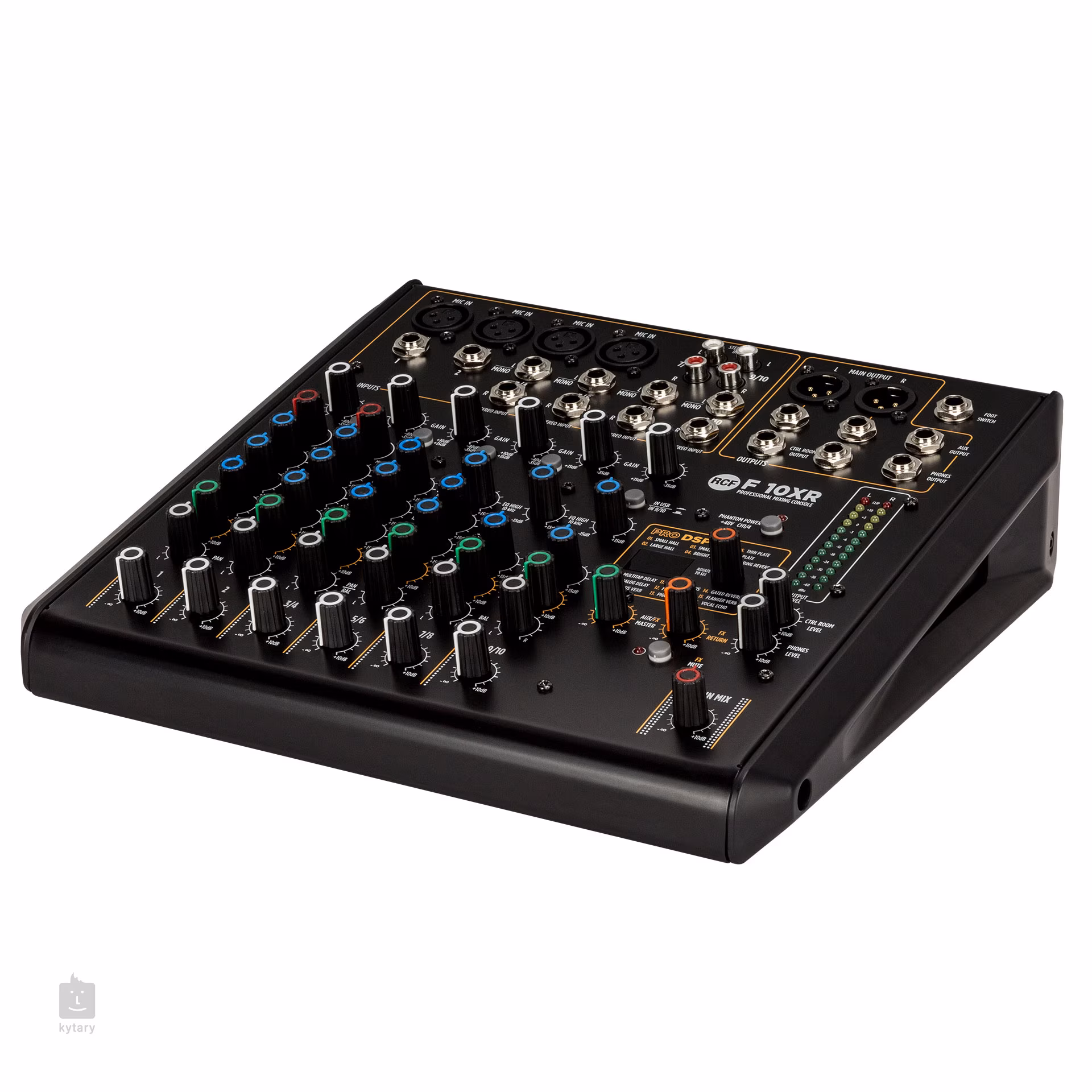 RCF F 10X je desetikanálový mixážní pult z řady F series, nové generace analogových mixážních pultů italské značky RCF, která je postavena na odkazu řady E series a nabízí prvotřídní kvalitu a profesionální zvuk. Jejím velkým lákadlem je také integrovaná efektová jednotka Pro DSP FX, která vám zprostředkuje šestnáct profesionálních efektů, mezi nimiž nebude chybět několik druhů reverbu (Hall, Room, Plate, Spring), delayů (Mono, Stereo, Multitap), modulačních efektů jako chorus a flanger, echo a spousta dalších.