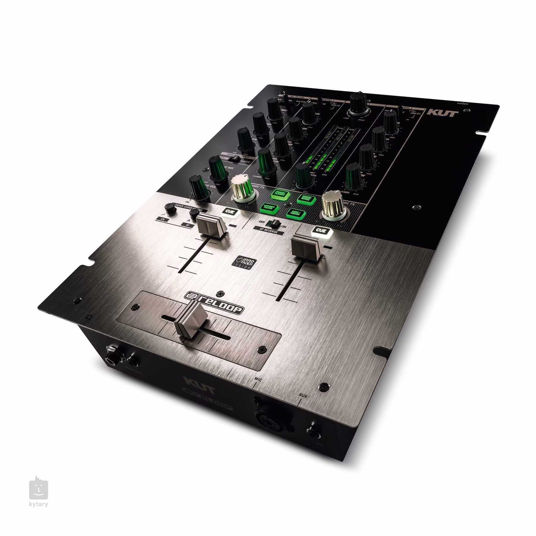 Reloop KUT je digitální mixer, který nabízí dva kanály, innofader a Dynamic FX sekci se sedmi efekty pro kreativní remixy. Samozřejmostí je zabudovaná zvuková karta.