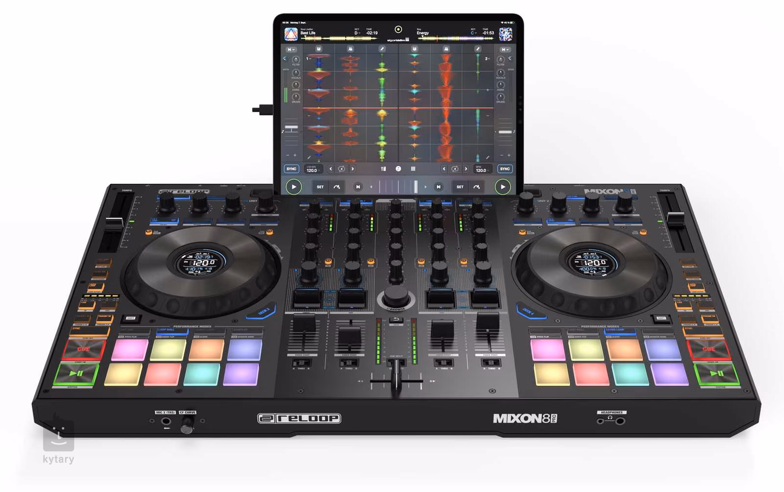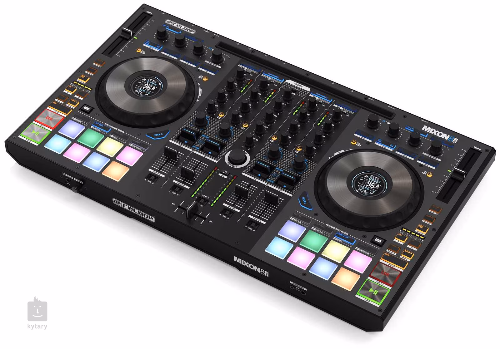 Mixon 8 Pro je multifunkční čtyřkanálový DJ kontrolér od Reloop vhodný pro pokročilejší a profesionální DJ, kteří ho využijí na studiových session, nebo live performance. Kontrolér můžete připojit až ke dvěma zařízením typu PC a laptop, protože Mixon 8 Pro nabízí integrované zvukové rozhraní. Disponuje intuitivním ovládacím panelem s podsvícenými pady, čtyřmi dotykovými FX pedály včetně třípásmového ekvalizéru a výkonnými Jog wheely s víceřádkovým displejem.