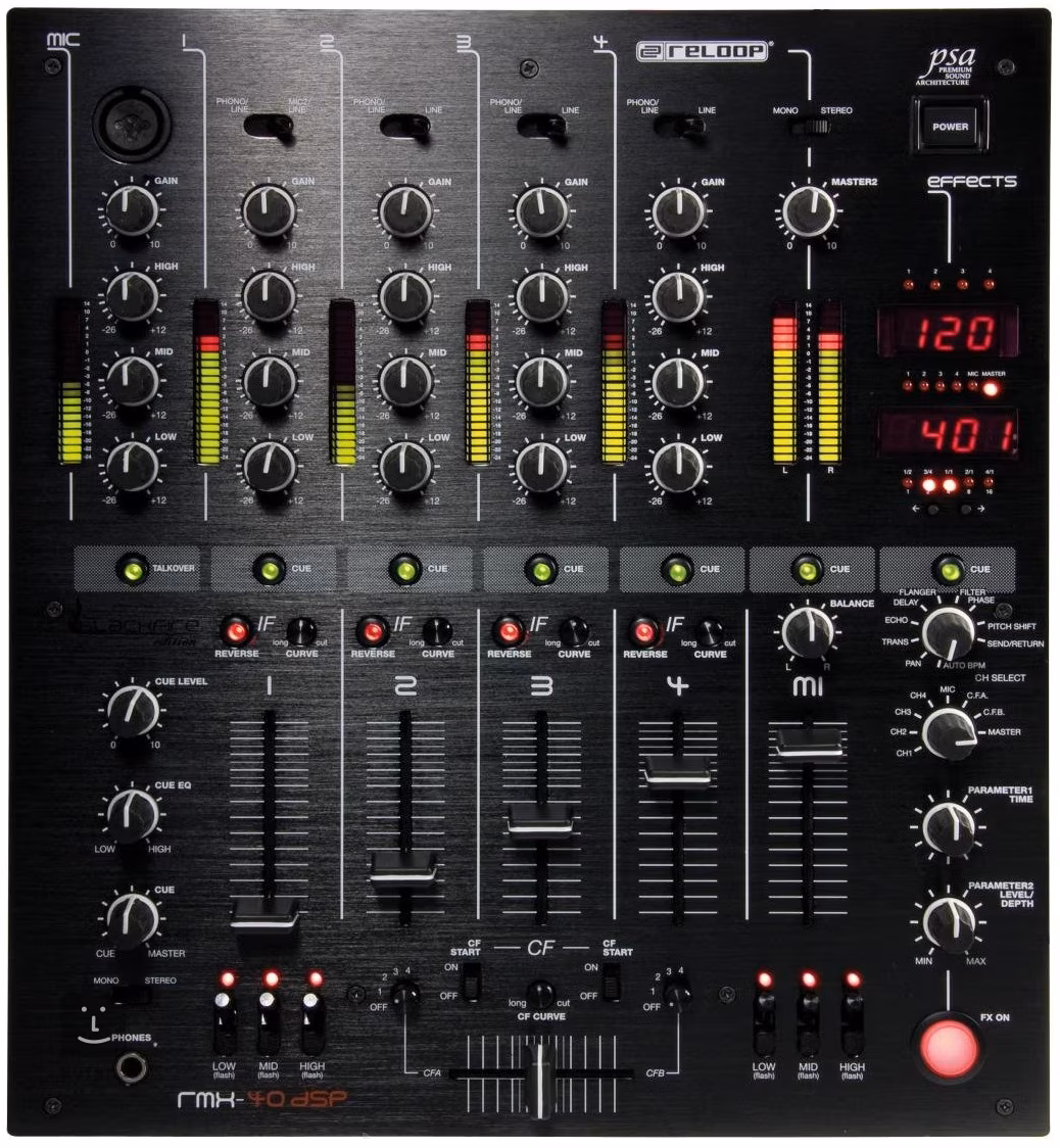 Legendární a nejprodávanější 4-kanálový mixážní pult Reloop RMX-40. Extra vysoká kvalita zvuku, provedení a efektoru. Vyrobený ze železa, poctivý výrobek.
