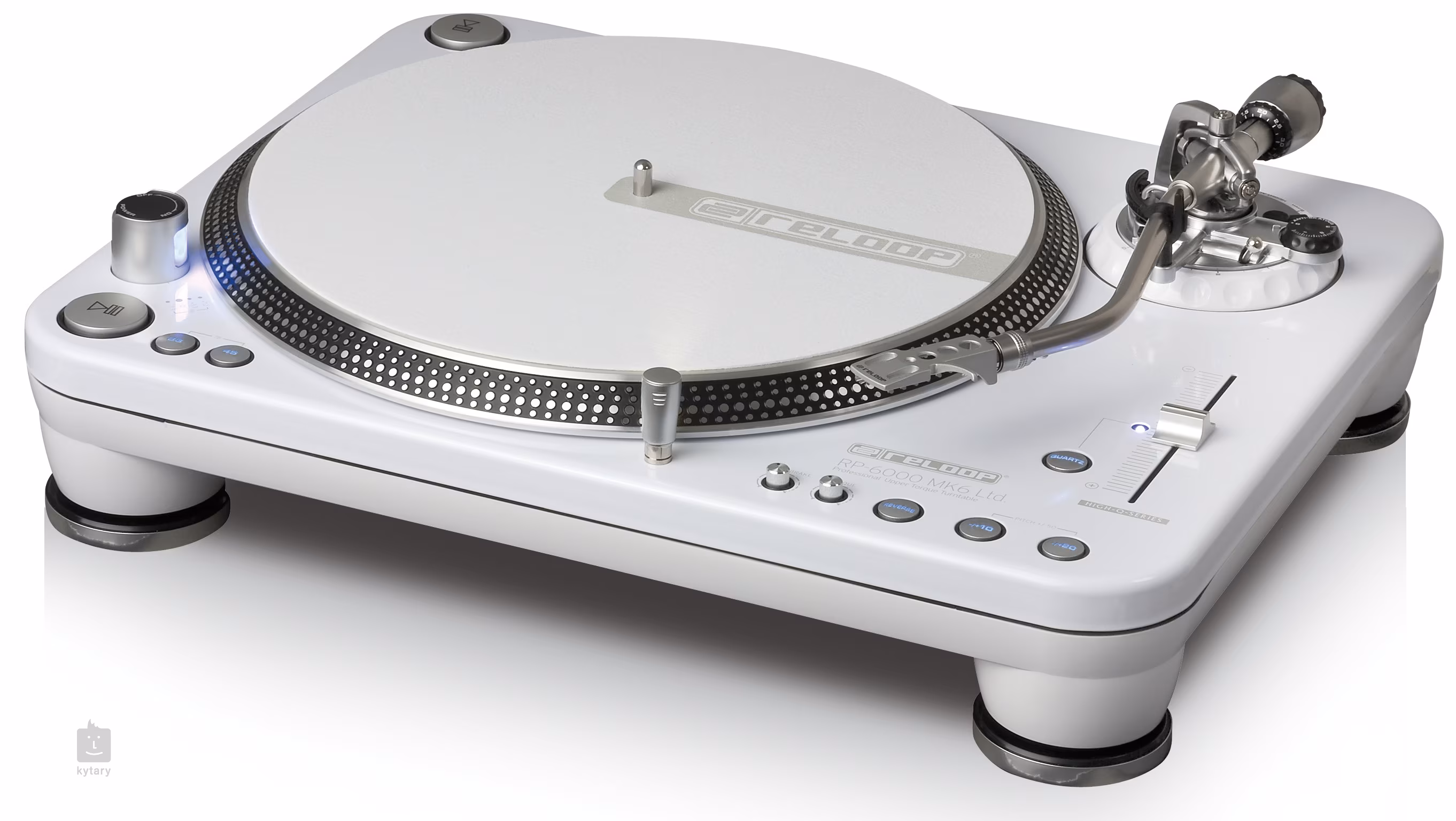 Tato limitovaná speciální edice profesionálního gramofonu Reloop RP-6000 MK6 prokazuje svou jedinečnost nejen svým jemným bílým keramickým lakovaným povrchem a bílým ovládacím panelem:integrovaný vyrovnávací předzesilovač podporuje Line nebo Phono signálový výstup a dělá tento exkluzivní luxusní Reloop gramofon kompatibilním s jakoukoli mixážní konzolí a zesilovačem bez nutnosti uzemnění. A s nekonečně nastavitelným otáčivým momentem v rozsahu mezi 2.5 s 4.5 kg/cm může DJ s maximální přesností nastavit pohon podle vlastních preferencí. Mistrovský kousek mezi gramofony.