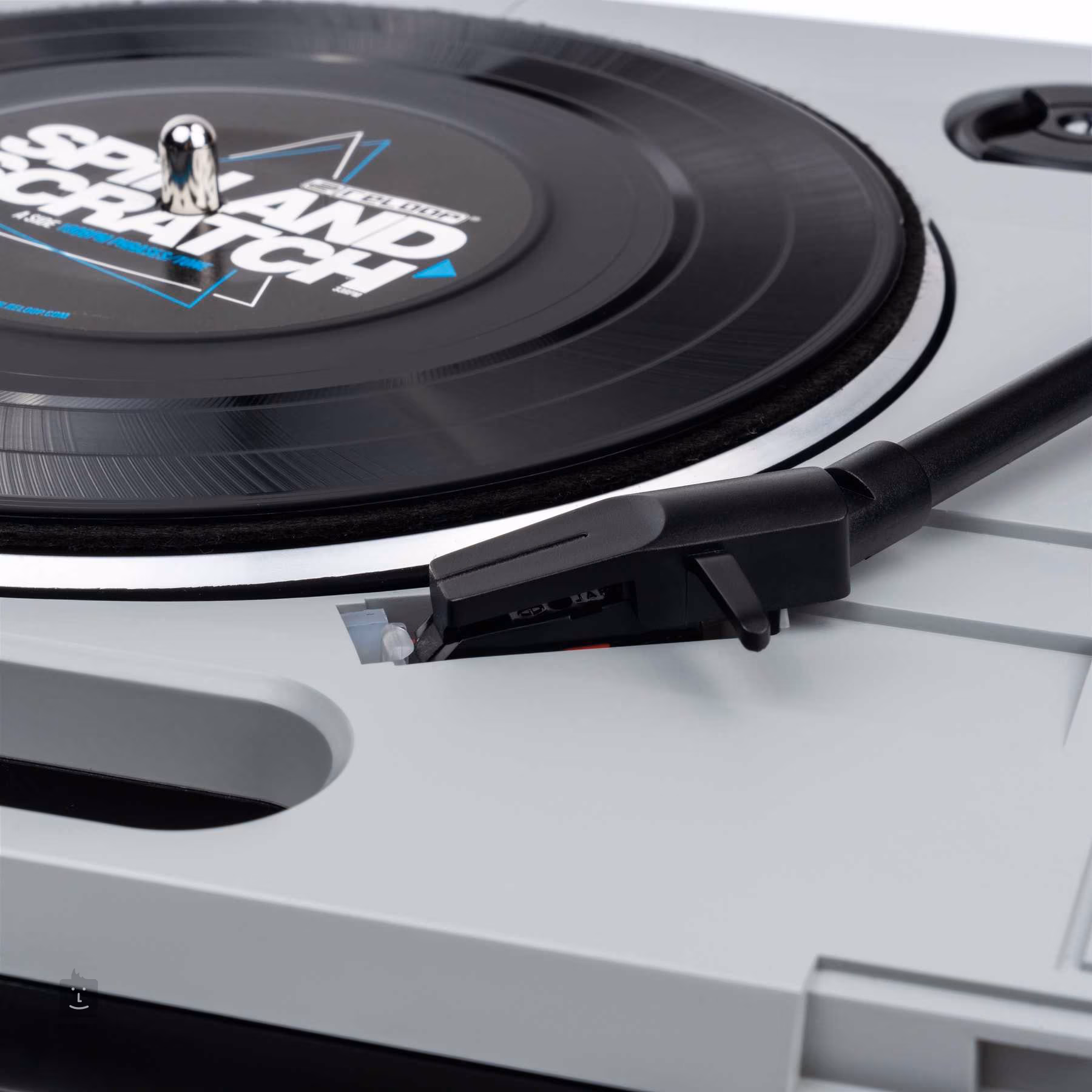 Gramofon se dodává včetně přenosky, sedmipalcového vinylu se scratch samply a nechybí ani 45 mm crossfader. Díky zabudovanému reproduktoru můžete svoje groovy hned poslat do světa nebo ho využít pro bezdrátové streamování hudby z mobilu či tabletu prostřednictvím zabudovaného Bluetooth přijímače.