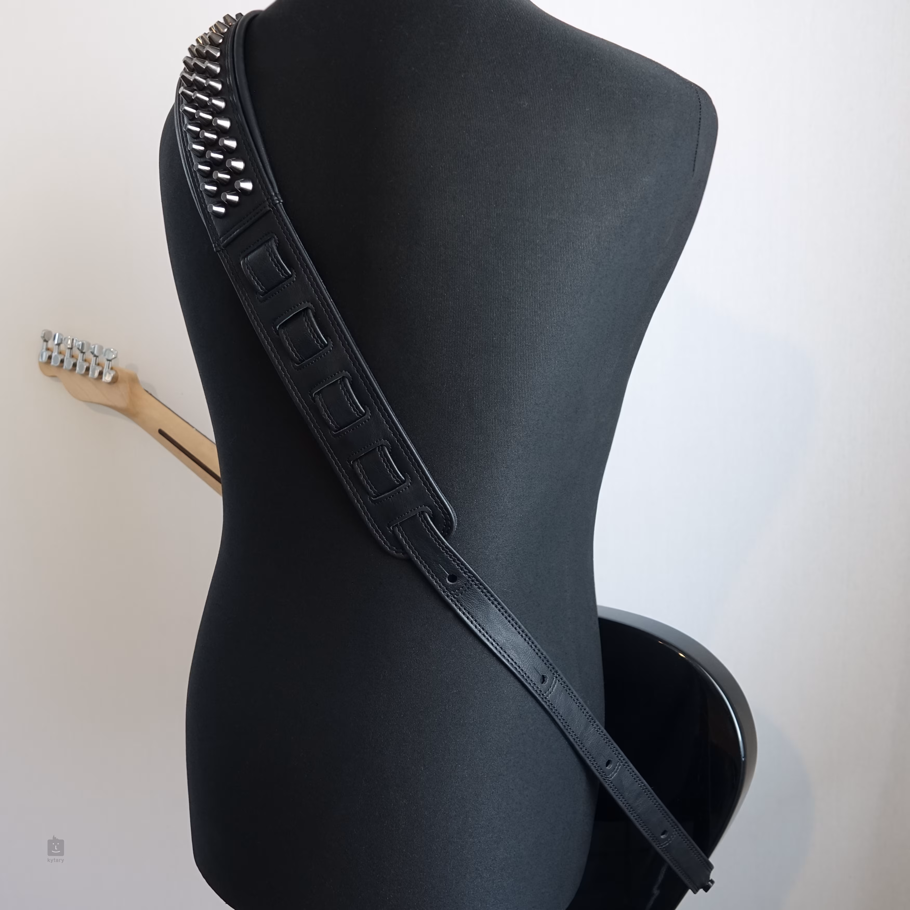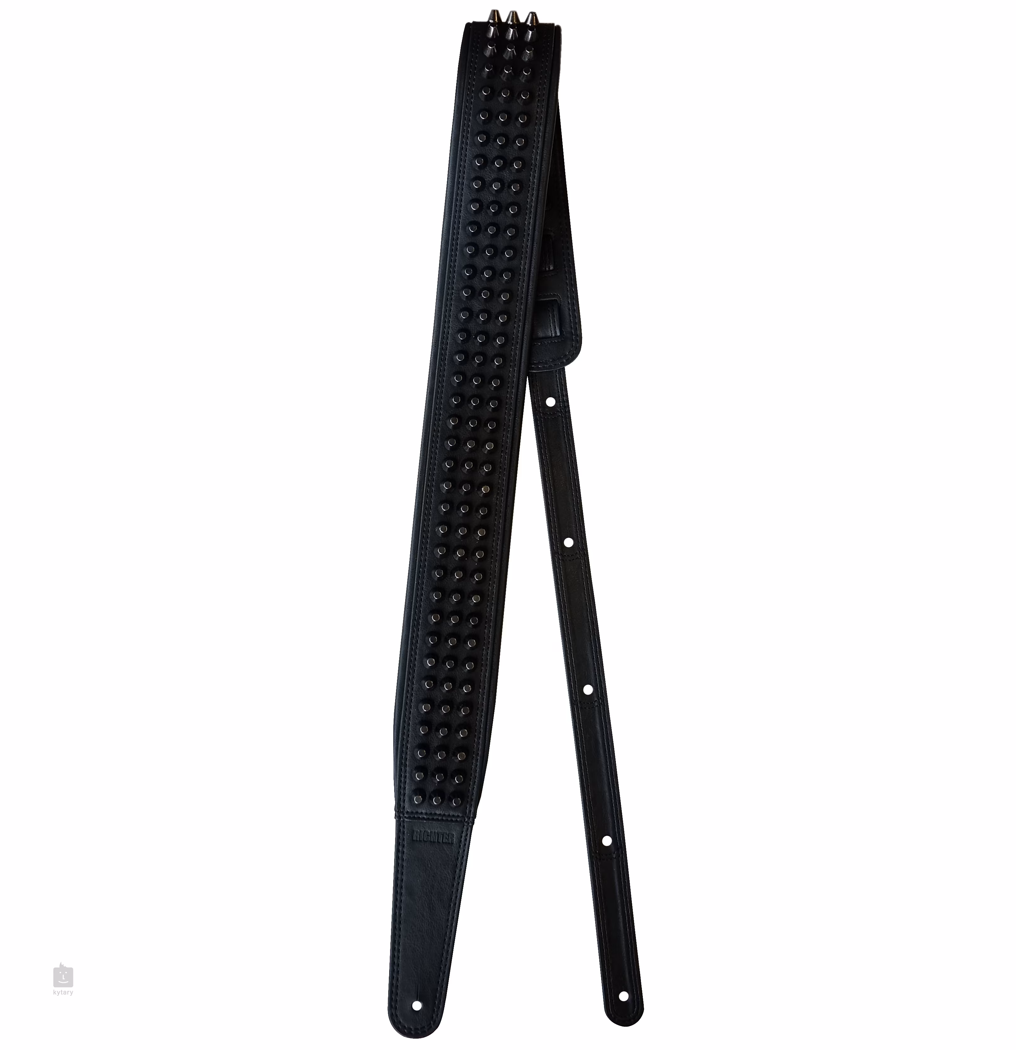 Stylový popruh vyrobený z těch nejkvalitnějších materiálů tak, aby splňoval vysoké nároky profesionálních hudebníků. Tento model je vyroben z umělé kůže, která zaručuje maximální pohodlí. Ozdoben je tupými bodci pro správný rockový look. Nastavitelná délka je pak samozřejmostí.