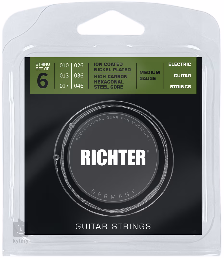 Tyto struny pro elektrickou kytaru značky Richter vám poskytnou dlouhotrvající výdrž a prvotřídní zvuk. Jejich základem je šestihranné ocelové jádro s vysokým podílem uhlíku a vinutí z poniklované oceli, které jim dodává příjemný, frekvenčně vyvážený tón vhodný pro celou řadu hudebních stylů. Struny jsou potažené speciální iontovou vrstvou, která je chrání proti korozi a nečistotám, čímž zásadně prodlužuje jejich životnost.