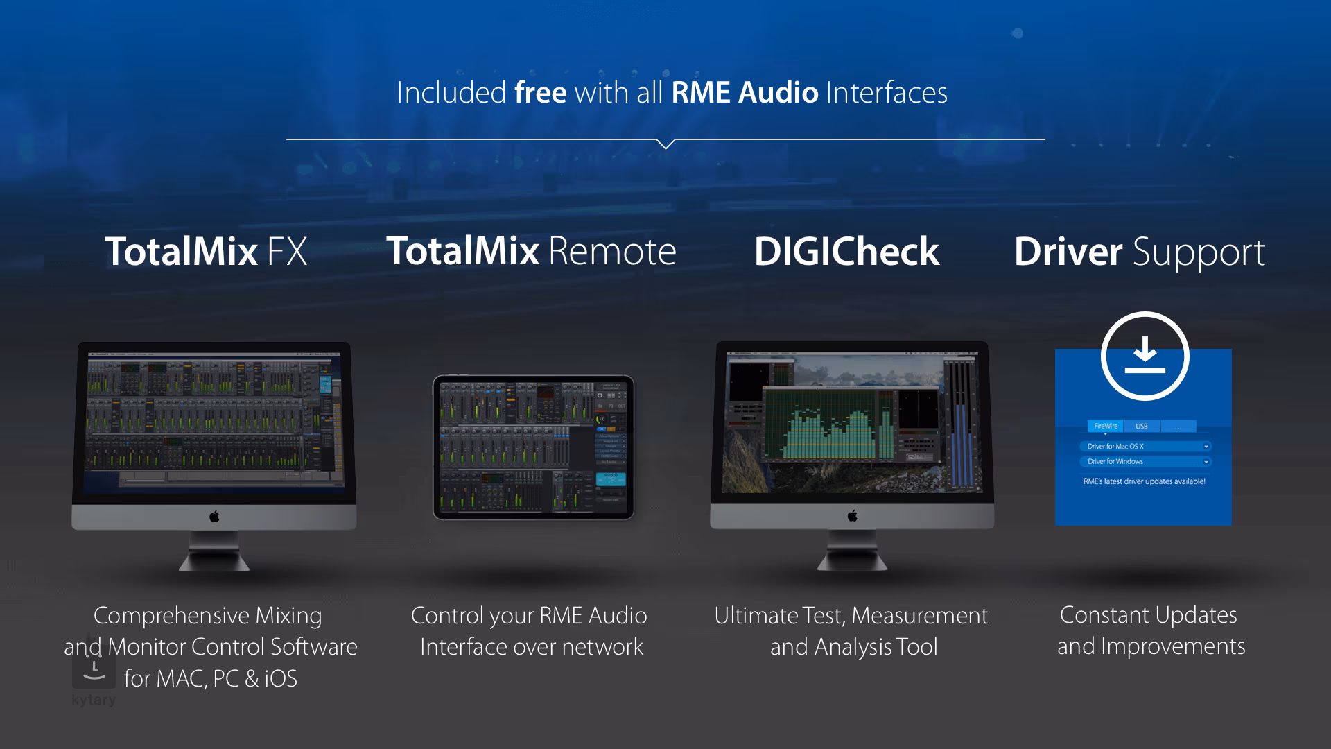 Připojení přes FireWire / USB, Total Mix FX s DSP efekty, možnost dálkového ovládání.