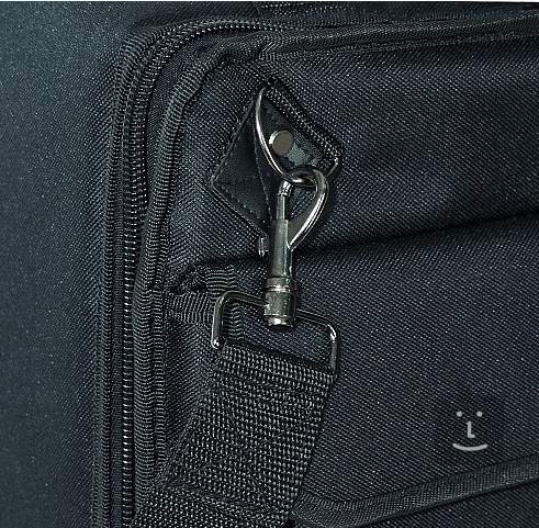 Voděvzdorný pevný povrch Roktex, vnitřek extra silný nylon, 10mm zip, polstrované ucho, 50mm široký odnímatelný popruh s pouzdrem pro mobil, kapsa pro paličky a příslušenství, dno a výko z tvrdého kartonu, PVC ochrana, kovové nožičky, karabiny a osy kovové, průhledné pouzdro na vizitky.